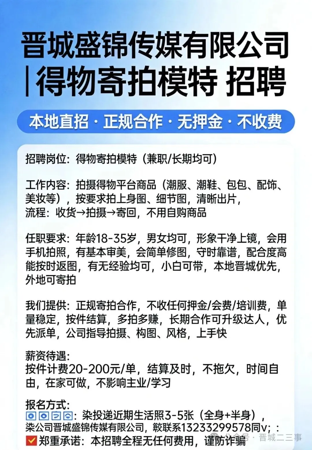 当前位置:首页>美女资讯>晋城青年男女看过来!寄拍模特招募,全职兼职任选