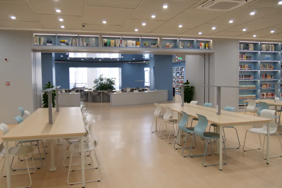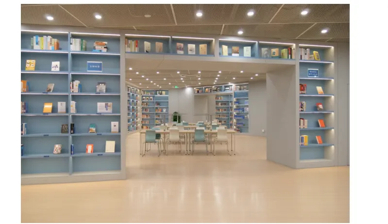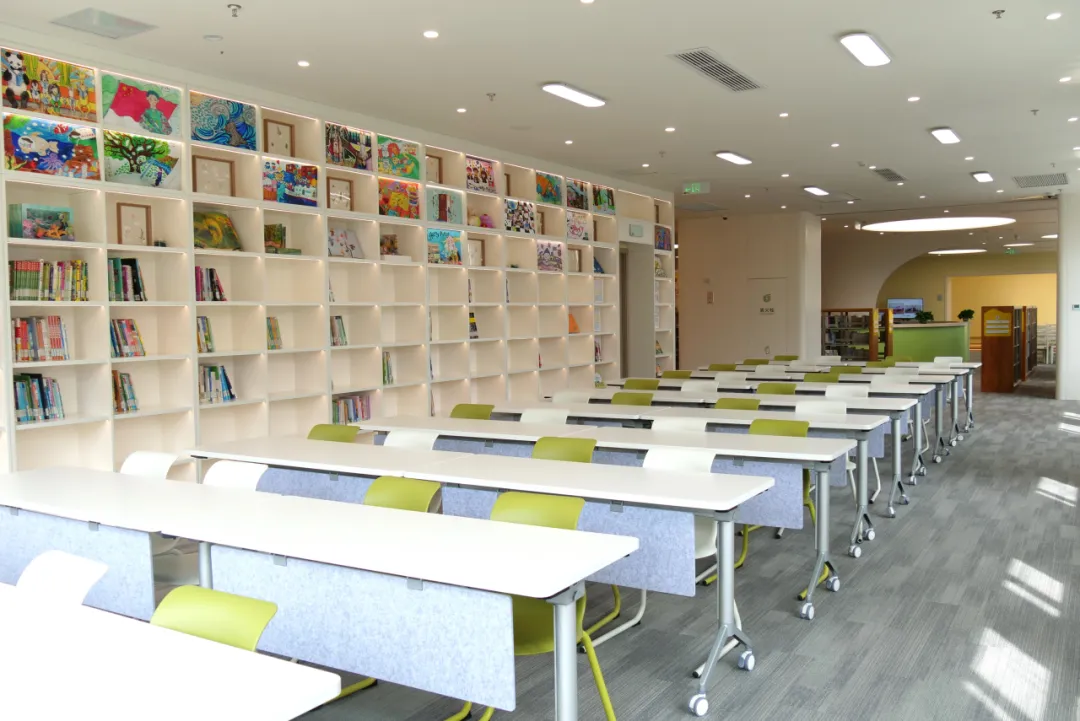 深度打造沉浸式阅读氛围 总馆根据儿童和成人读者的阅读需求,分别打造了沉浸式阅读氛围。成人阅览室内以原木色和天蓝色为基调,设计了靠墙、沿梯、门廊、连廊等多种形式的书墙,搭配同色系的阅览桌椅、辅以柔和适宜的阅读照明,令置身其间的读者有“坐拥书海、静心一阅”的氛围体验。少儿图书室面积扩大至450㎡,以明快的“黄、绿、白”三色为主基调,室内设“低幼、小学、初中”三个分龄阅读区,提供适配不同年龄段小读者的阅览座席150多个,拥有少儿馆藏文献6万多册、包含原版少儿读物1700多册,新增国内外优质少儿期刊48种。不管是少儿或是成人读者,都能在这里享受到一站式的沉浸阅读体验:在阅读坐席上进入深度阅读,翻阅报纸期刊检索最新信息,在主题书架前进行休闲泛读,在多功能活动区讨论分享阅读心得……在馆内的任何时刻,都能全身心感受阅读带来的精神文化世界的富足与愉悦。
