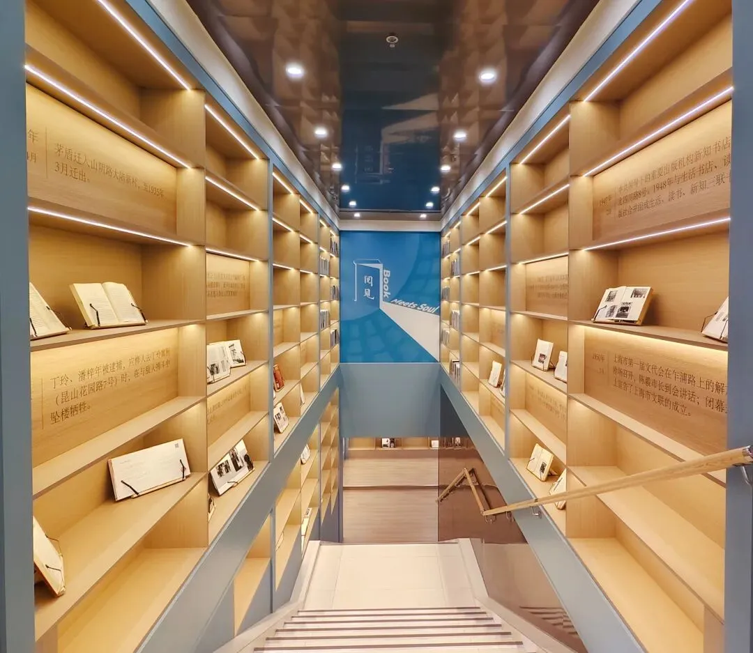 1楼通往2楼的书墙楼梯“虹影文脉”