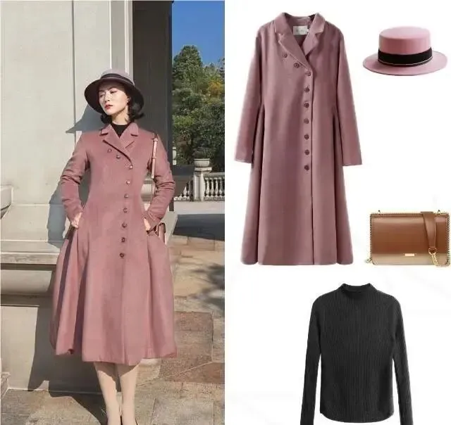 每个女生心里 都藏着一个少女梦 我也不例外 那天 我穿上那件粉色大衣 感觉自己瞬间年轻了好几岁 内搭一件黑色毛衣 优雅又不失华丽 出门的时候 我戴上一顶渔夫帽 再挎上一个单肩包 哇 那感觉 就像春天的少女一样 清新又甜美