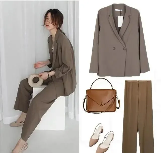最后说说那件西装吧 它可是我正式通勤的必备单品 想要穿出优雅时髦干练的气质 同色系搭配是关键 我深卡其的西装 搭配驼色或焦糖色的内搭和裤子 深浅相宜 整体感十足 每次穿它去上班 同事们都夸我穿得有气质