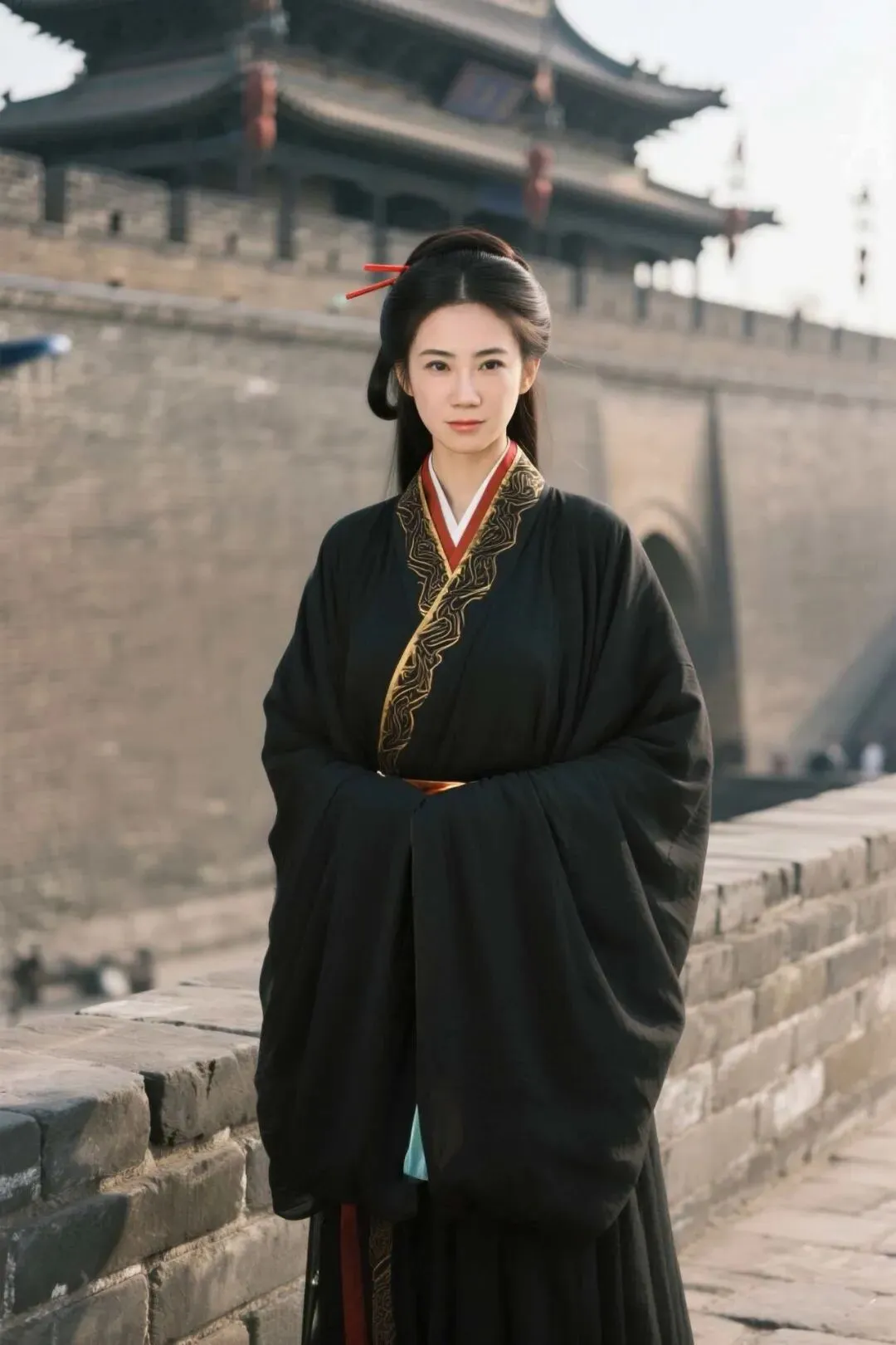身姿挺拔、眼神沉静,既有先秦贵女的矜庄,又有乱世里的坚韧飒爽,一眼便是千年厚重感。