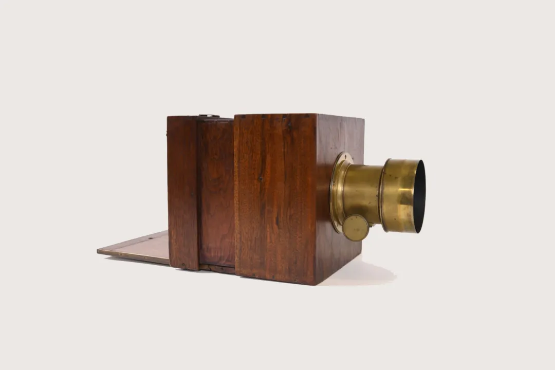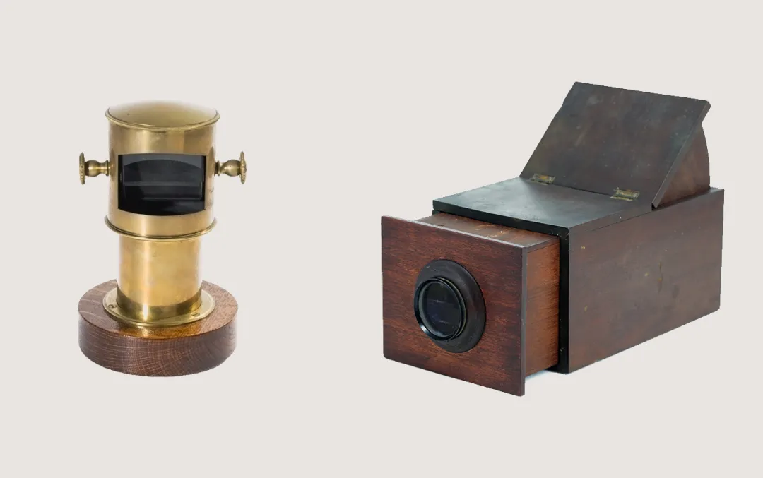人类始终怀有一种愿望:捕捉光线、固定瞬间,使所见的现实得以保存与传播。暗箱正是这一理想的重要起点。它基于小孔成像原理,使外部景象通过小孔投射到黑暗空间中,让人们直观地观察光的直线传播,并帮助艺术家更准确地描绘自然。随着技术发展,人们在小孔前加入透镜,使图像更加明亮清晰,并在内部设置屏幕或描绘纸,便于观察与临摹。另一方面,18世纪末至19世纪初,科学家发现氯化银等银盐在光照下会逐渐变暗,表明光不仅能形成影像,也能在化学物质中留下痕迹。暗箱提供了成像方式,银盐材料则提供了记录影像的可能,这两项探索共同为相机的诞生奠定了基础。