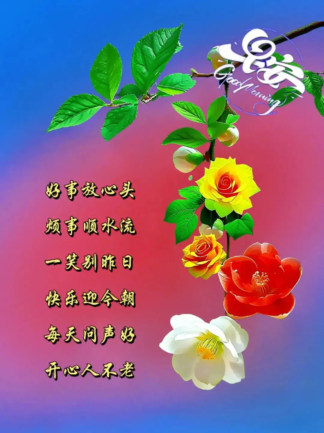 好事放心头,烦事顺水流。淡然一笑别昨天,美好心情迎今天。健康身体迎明天,笑对人生每一天,早安愉快~🌺🌹😊❤🙏☀🎉