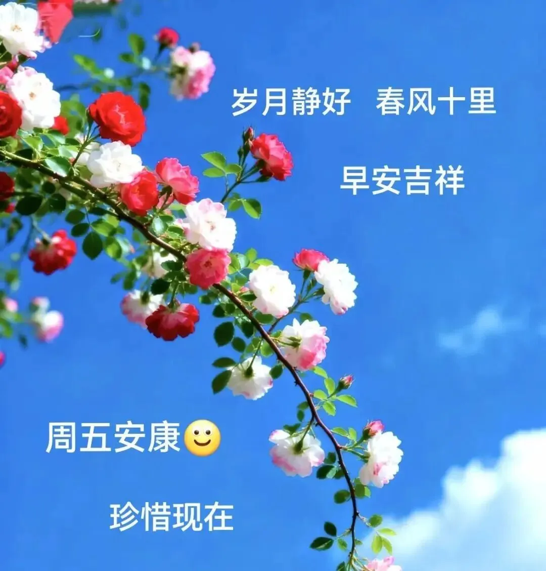 晨起福门开,快乐安康在,愉悦心态好,生活充满爱!周五早安!让我们一起微笑😄迎接这美好的一天!🌹🌺🍎🤝🌞🎉