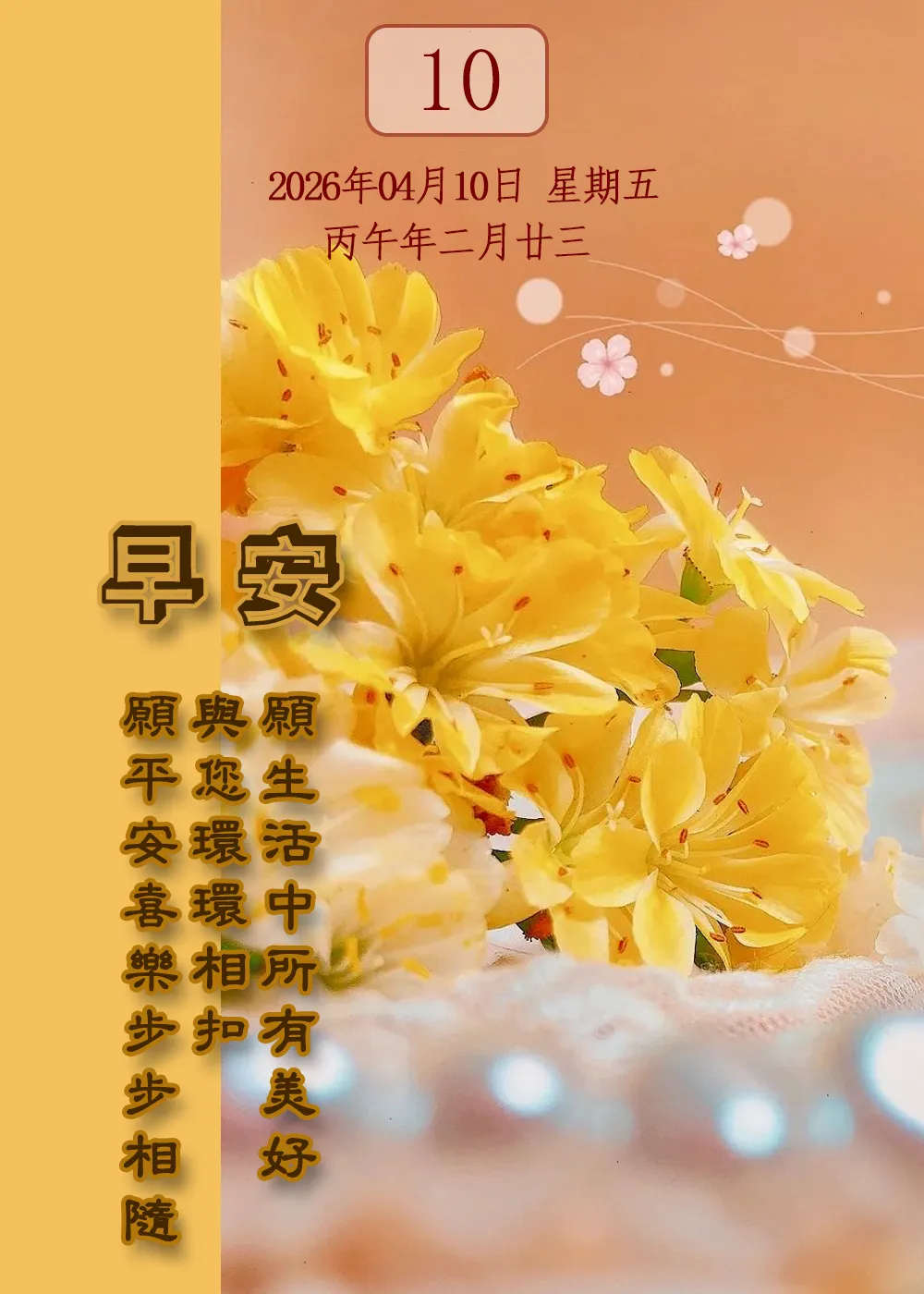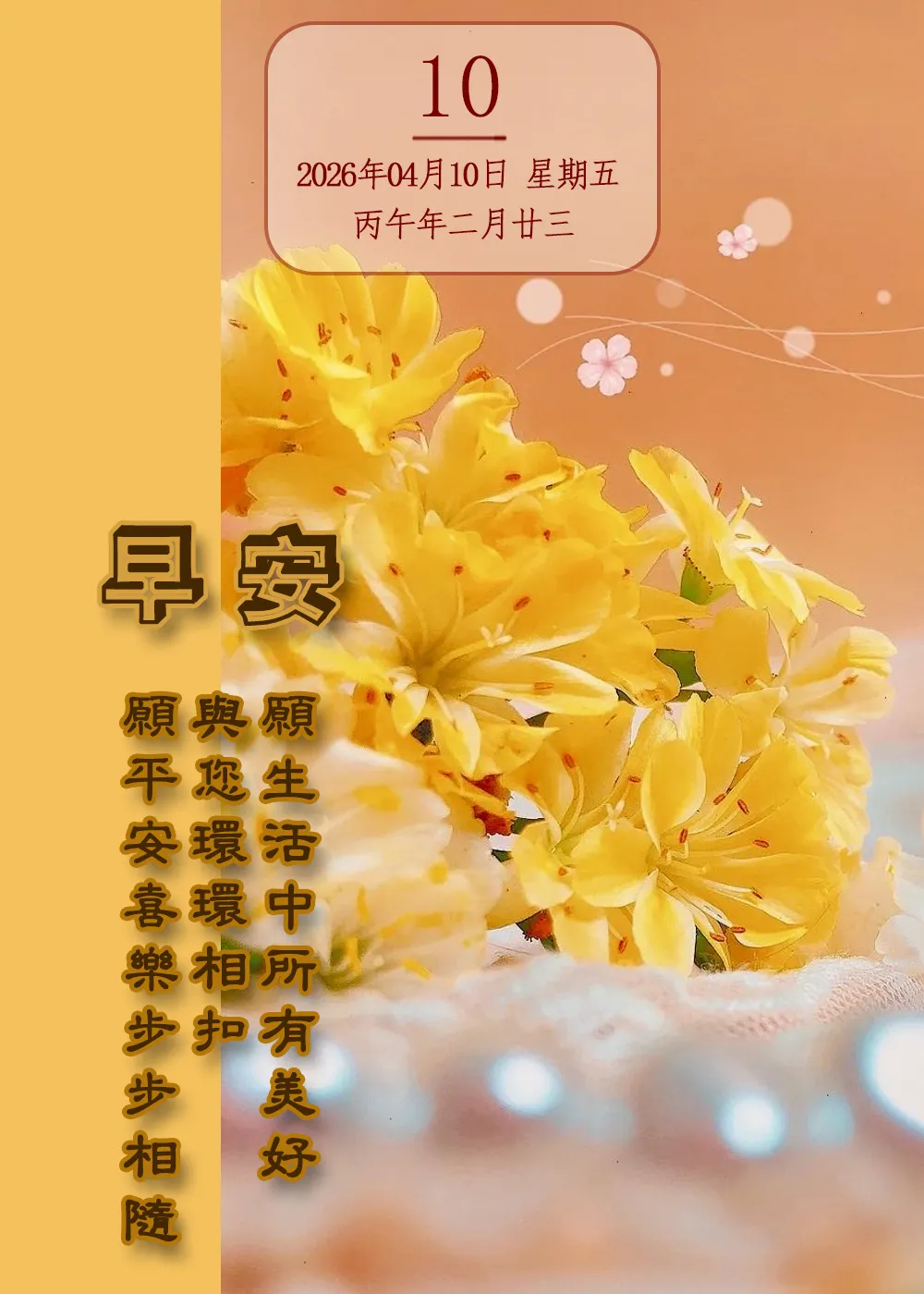 当前位置:首页>美女资讯>2026年4月10日 早安问候图片