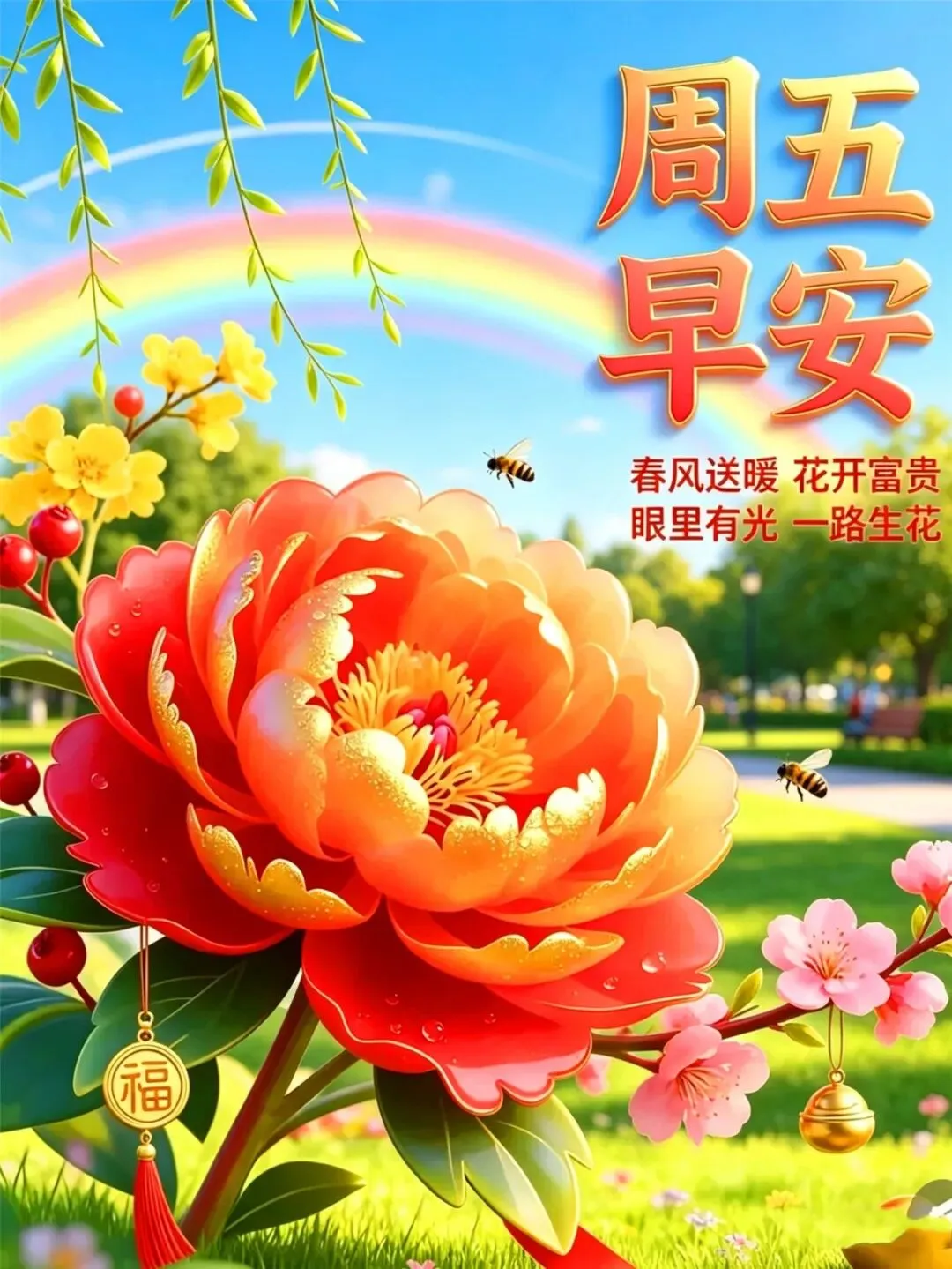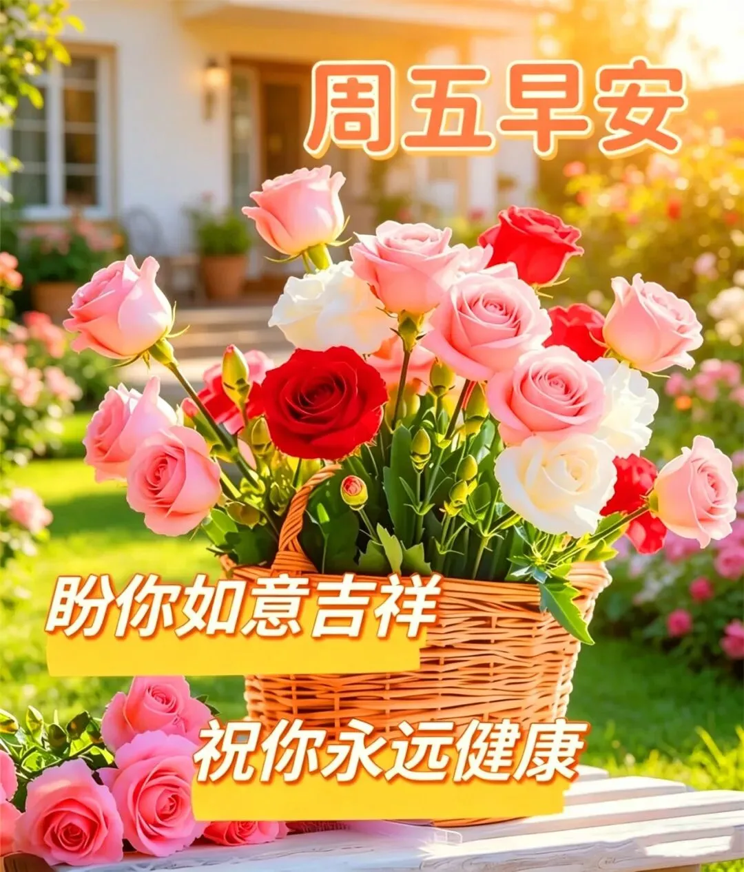 每日祝福蕴真心,朝夕叮咛意自深,好运并肩同奋进,康宁携手共追寻,平安岁月长相守,余生相伴胜黄金,周五早上好!