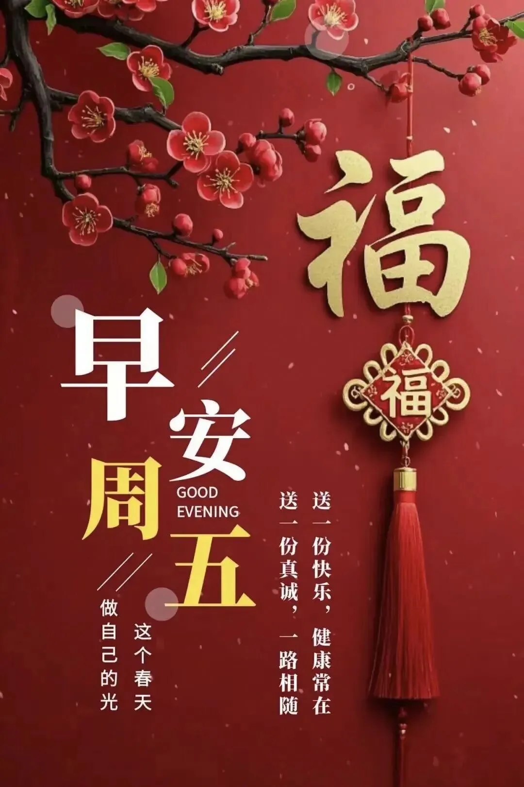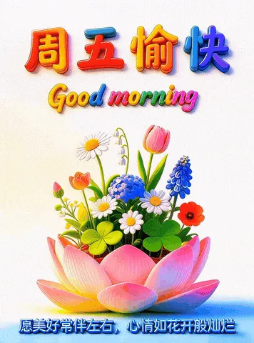 🌸周五早上好!春日的浪漫与周五的快乐撞个满怀,愿你被温柔治愈,被幸福包围🌸 愿你在周五的时光里,收获满满,快乐加倍,轻松度过工作日,尽情享受周末的悠闲与自在🎉