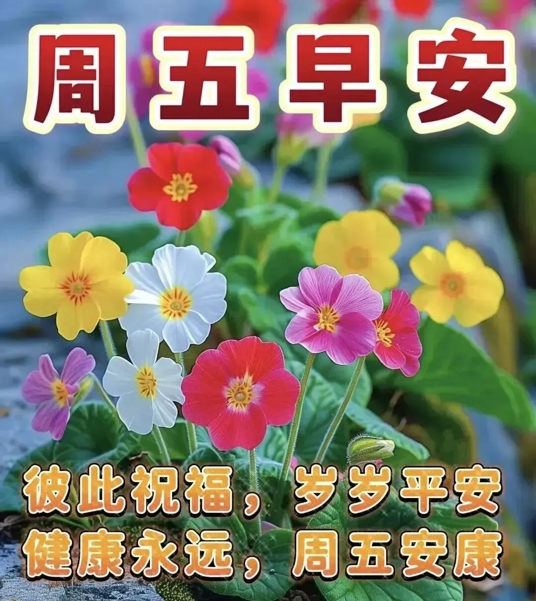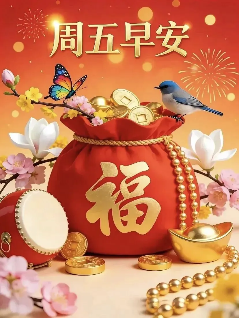 🌸周五早上好!一周的辛劳都有了回报,愿你带着满满的成就感,迎接轻松的周末🌸 愿你被好运眷顾,被幸福环绕,生活顺风顺水,日子温柔闪光,周五快乐,未来可期🎉