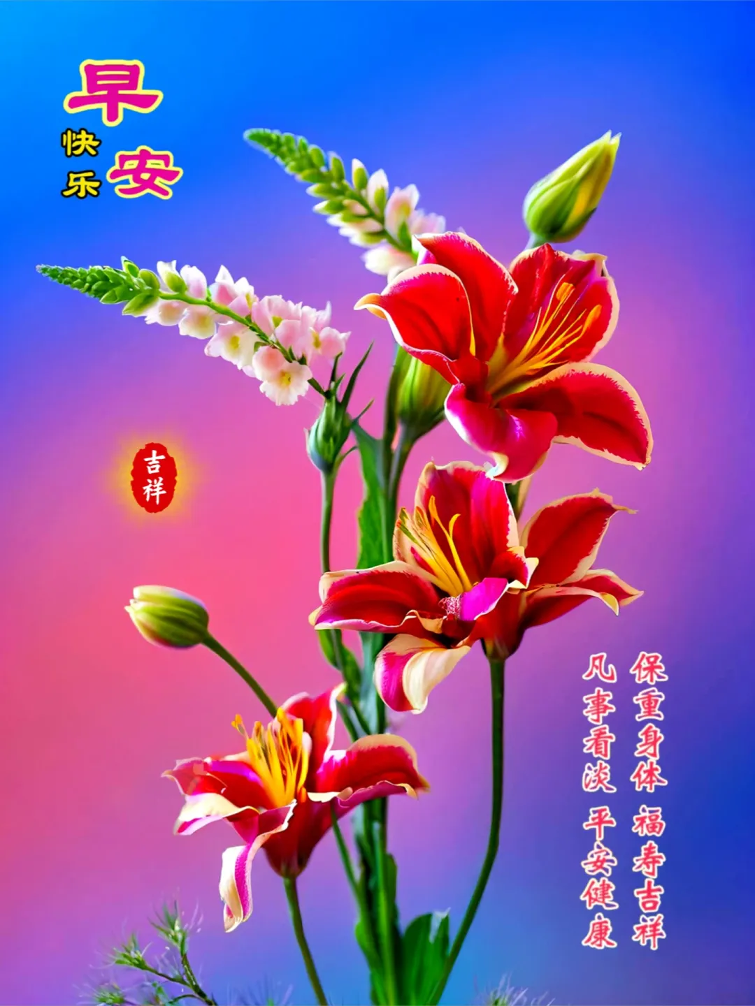 早上好!祝你身价贵过大熊猫,名声响遍大中华,事业登上红塔山,情人靓过阿诗玛,一路领先万宝路,事事顺心万事发。🌹🌺🍎🤝🌞🎉