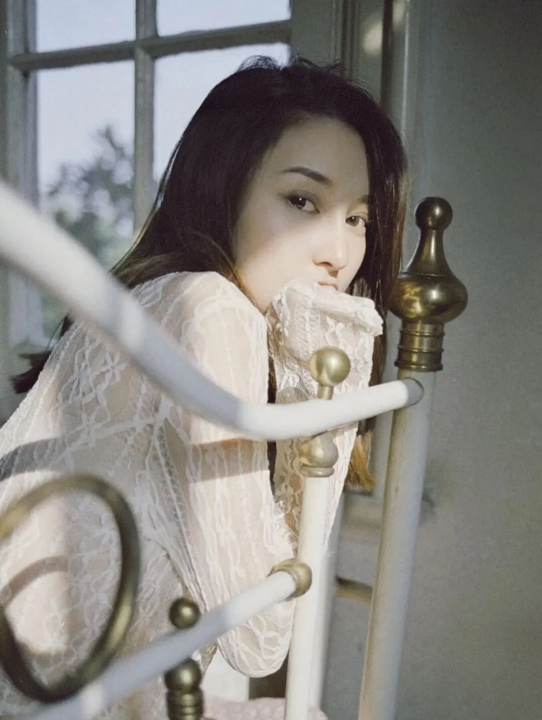 这组写真里很好看的地方,其实就是没有太满的表情,头发自然散下来,嘴角不用刻意笑,眼神轻轻放空或者微微看向镜头,就已经很出片了,这样的状态能让整个人看起来更柔软,脸部也不会紧绷,反而更显五官和气质,真正耐看的照片,往往都是这种不费力的自然漂亮