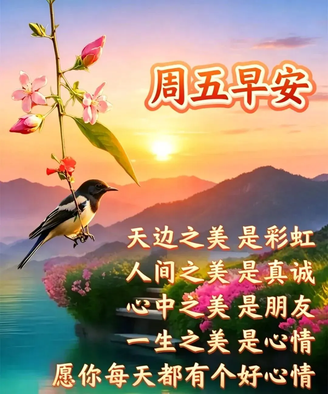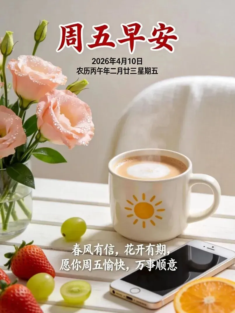 早安!愿你在温柔的晨光里,放下焦虑,拥抱轻松。愿工作顺顺利利,生活开开心心,身体健健康康,心情快快乐乐,万事皆圆满,岁岁皆平安。🌹☕🦄