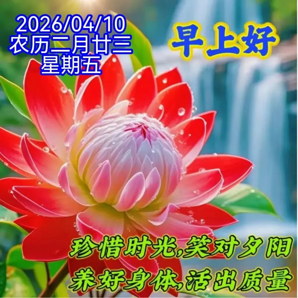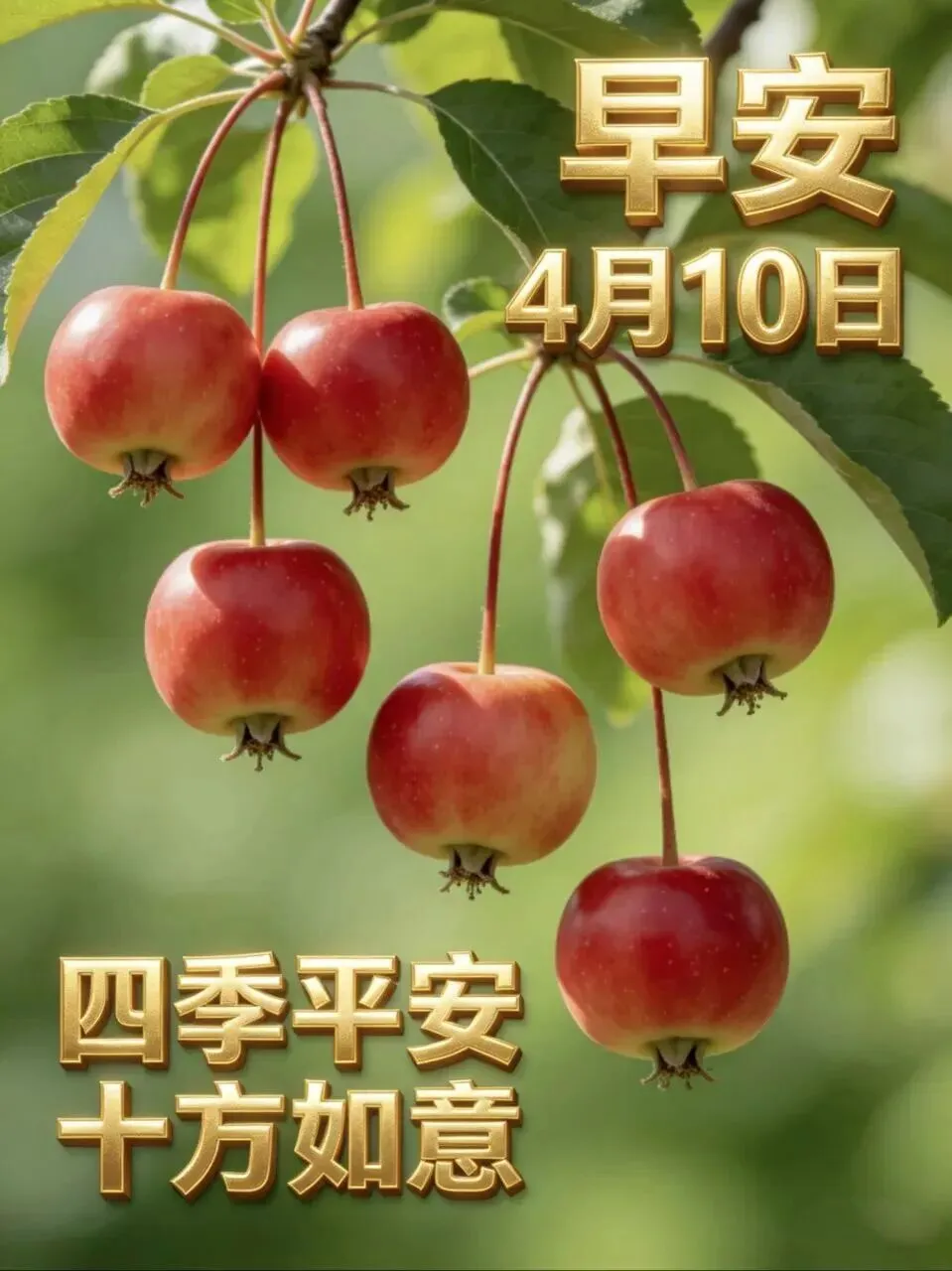 4月10日,愿时光温柔,生活可爱,岁月安稳,人生顺遂,每天都有新收获,每天都有小惊喜。早上好!祝身体健康,心情愉悦,每一天都幸福,好运,圆满。㊗️🍎