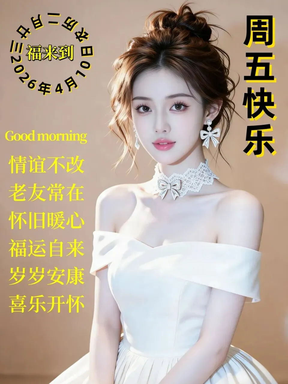 暖花开四月天,周五送福到身边。吉祥平安常相伴,安康喜乐满心田。一声早安情意重,愿你一天笑开颜。🌷