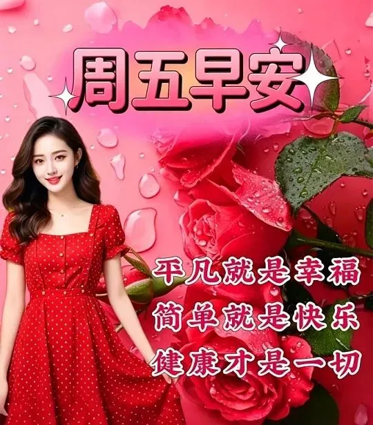 周五早安送吉祥,美好心情似暖阳。愿你身体棒,愿你笑容驻。千万个思念化甘露,朝朝暮暮,健康快乐永相护。