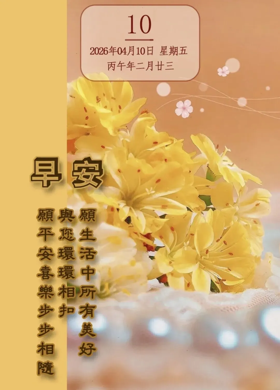 当前位置:首页>美女资讯>4月10日最新早上好图片漂亮祝福,春日早安温馨祝福语,周五早安问候祝福语,春天早上好问候祝福语.