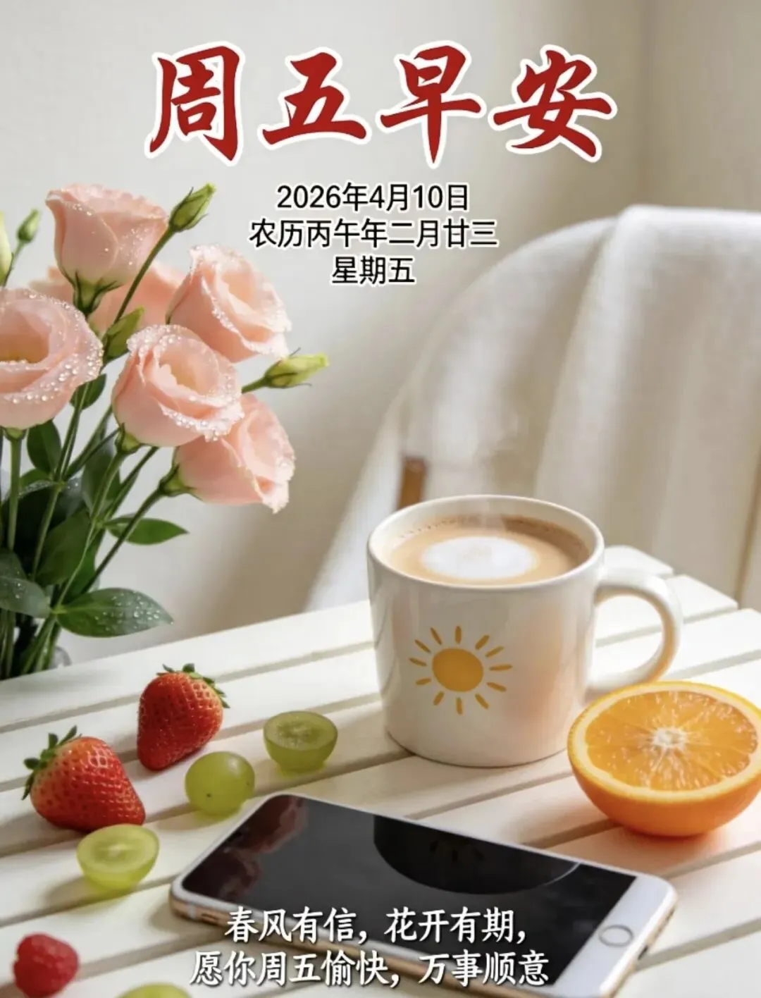 4月10日最新早上好图片漂亮祝福,春日早安温馨祝福语,周五早安问候祝福语,春天早上好问候祝福语.