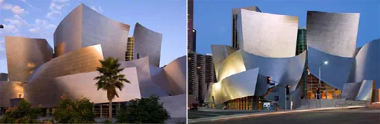 沃尔特·迪士尼音乐厅(Walt Disney Concert  Hall)位于美国加州洛杉矶,落成于2003年10月23日。造型具有结构主义建筑的重要特征,以及强烈的盖瑞金属片状屋顶风格。