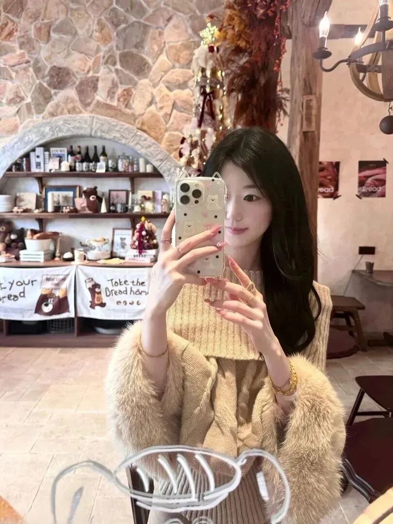 米驼色套装的配饰也是很好的。金色戒指加多层手链叠戴,马上就有高级感了。手机壳上白色的熊和浅粉色的圆点,温暖色调,少女心爆棚,秋冬穿不会沉闷。