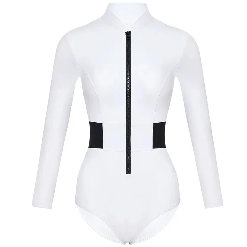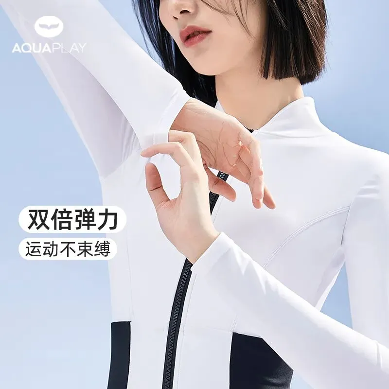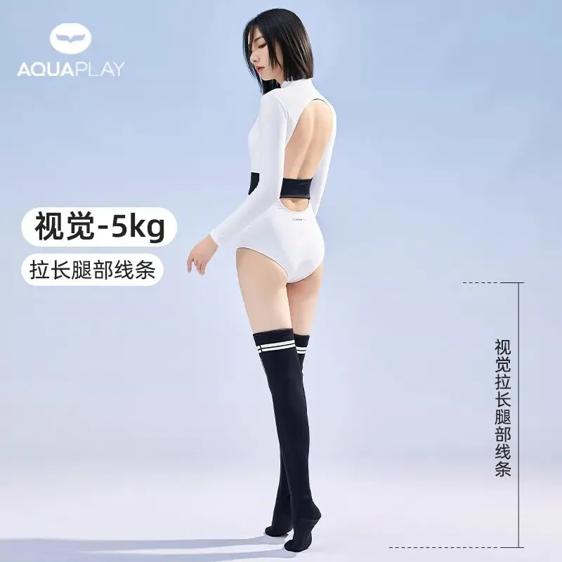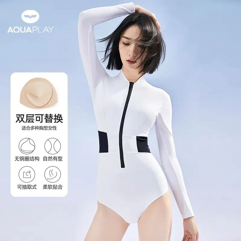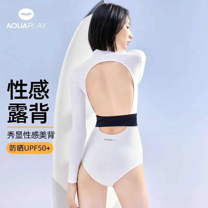 AquaPlay连体白色泳衣女款泳装性感长袖游泳衣女士防晒冲