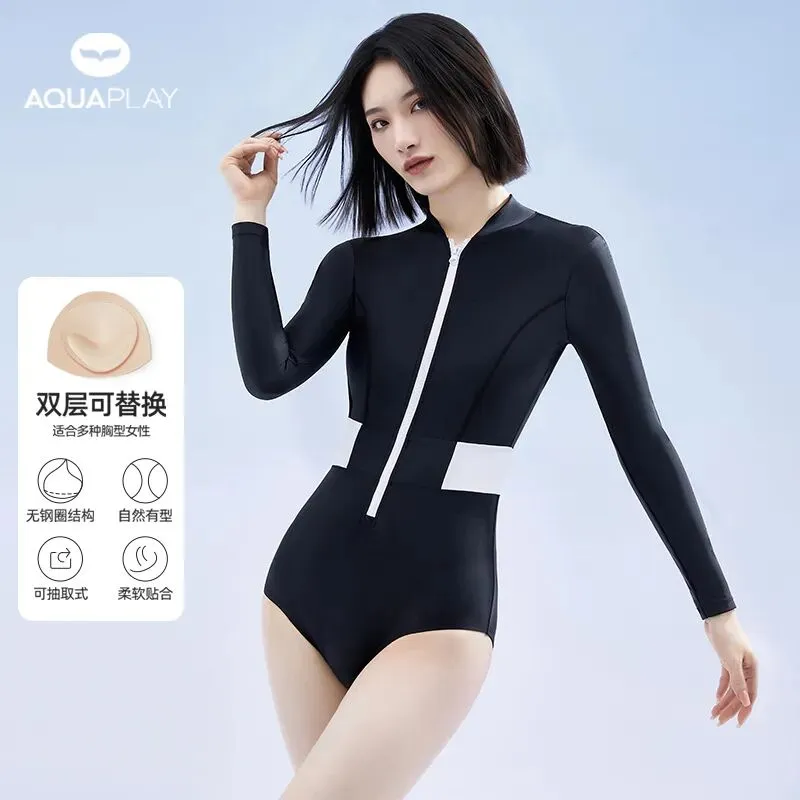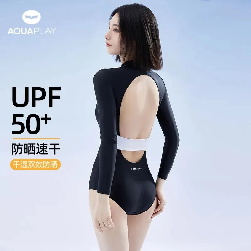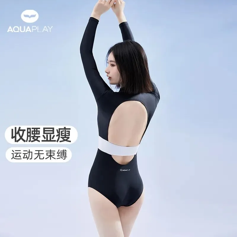 AquaPlay连体泳衣女长袖露背性感显瘦泳装女士防晒速干冲