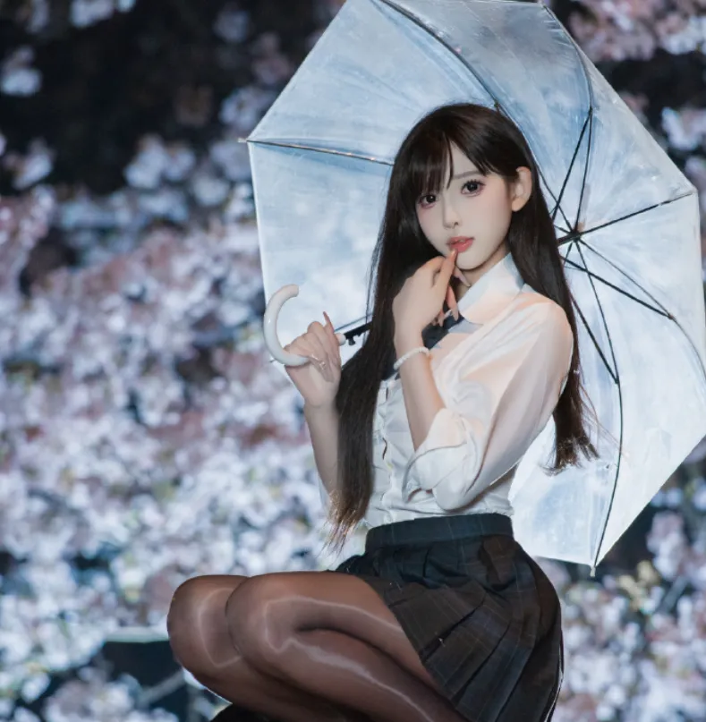 3. 黑丝 + 透明伞:雨夜氛围感的点睛之笔这绝对是整套穿搭的 “流量密码”!微透的黑丝自带纯欲滤镜,中和了白衬衫的清纯,让整体风格更有层次感;而透明雨伞更是绝绝子,雨夜中透明的伞面搭配背景的樱花,像把整个浪漫的雨夜装在了伞下,拍照巨出片,原相机直出都有朦胧氛围感。