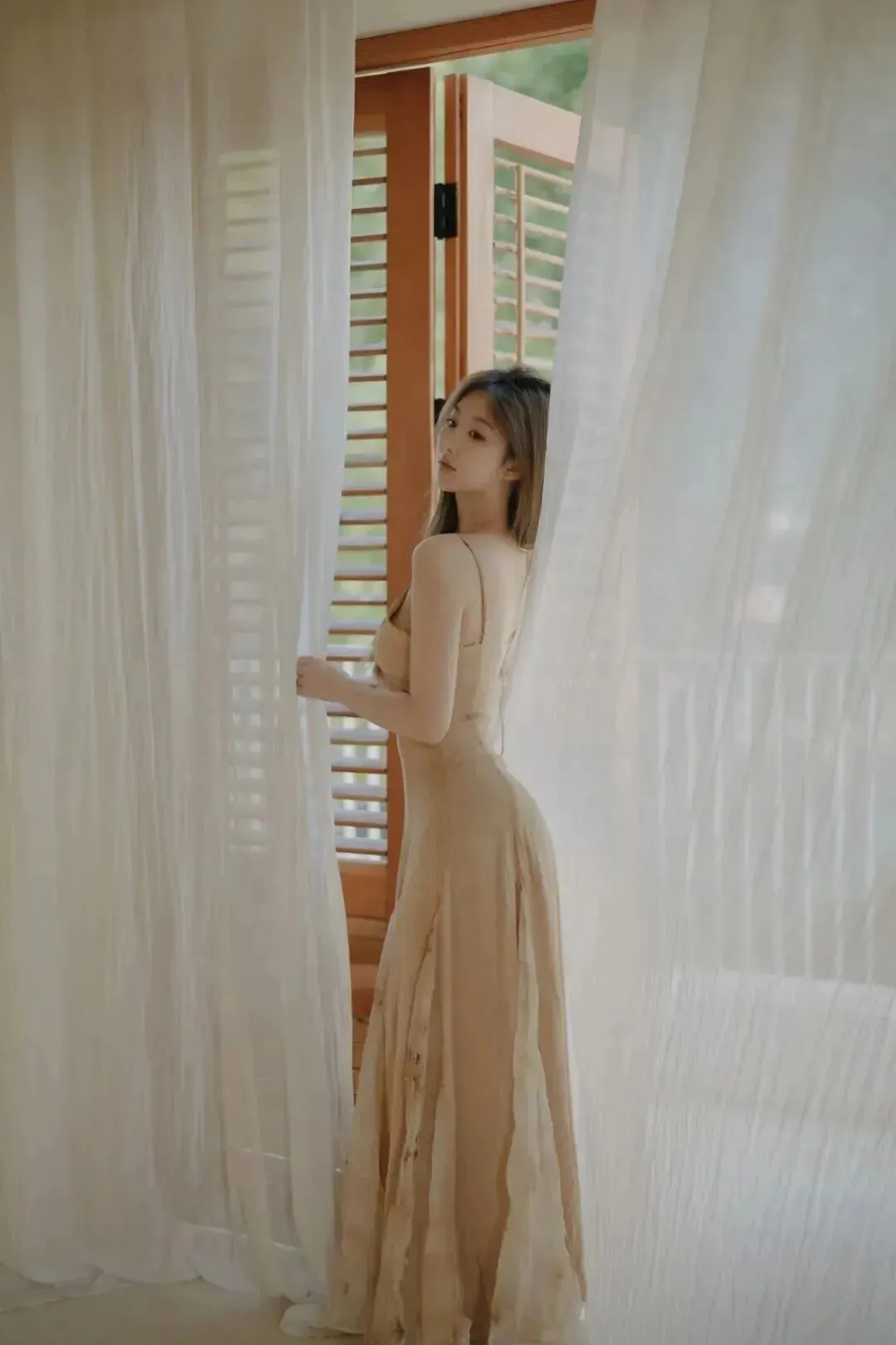 当前位置:首页>美女资讯>窗边氛围感写真,试试这组香槟色吊带裙,显瘦显高,温柔又出片
