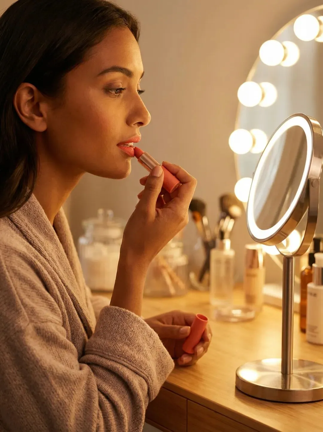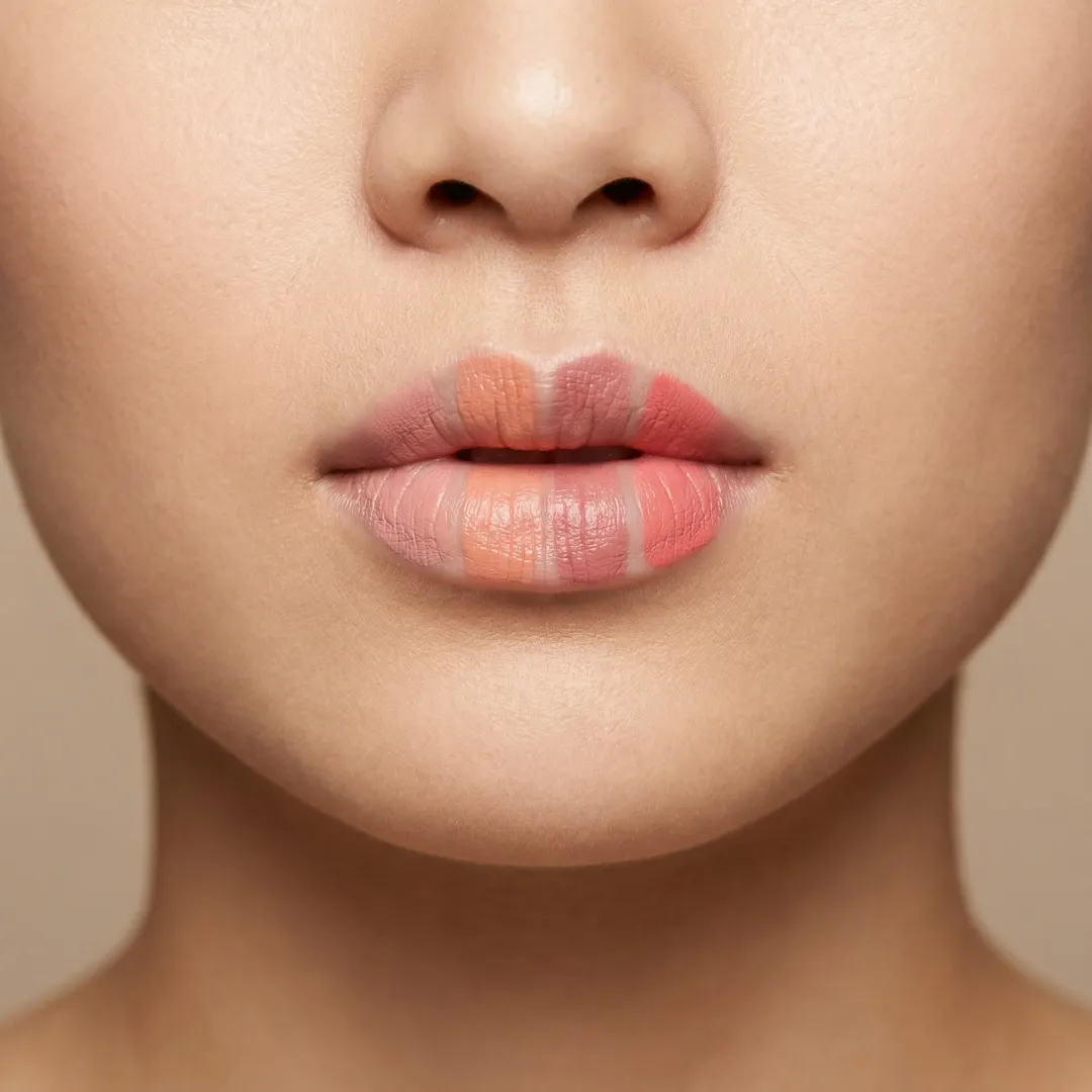 粉彩色下手重很容易变成"吃土色"或者显土气。从唇部中央开始,一层一层向边缘叠加,直到达到理想效果。
