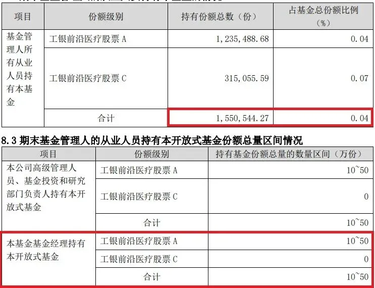 2025年中报显示,赵蓓还持有10-50万份工银瑞信前沿医疗A,2025年报中,她持有份额直接为0了。