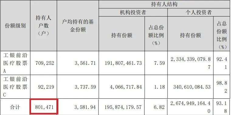 工银瑞信前沿医疗基金持有人户数下半年“消失”了近9万户。