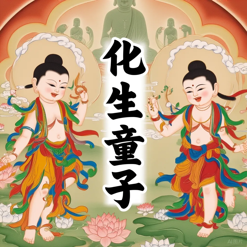 敦煌壁画中的“化生童子”形象,是佛教艺术与女娲造人传说相互融合的产物。