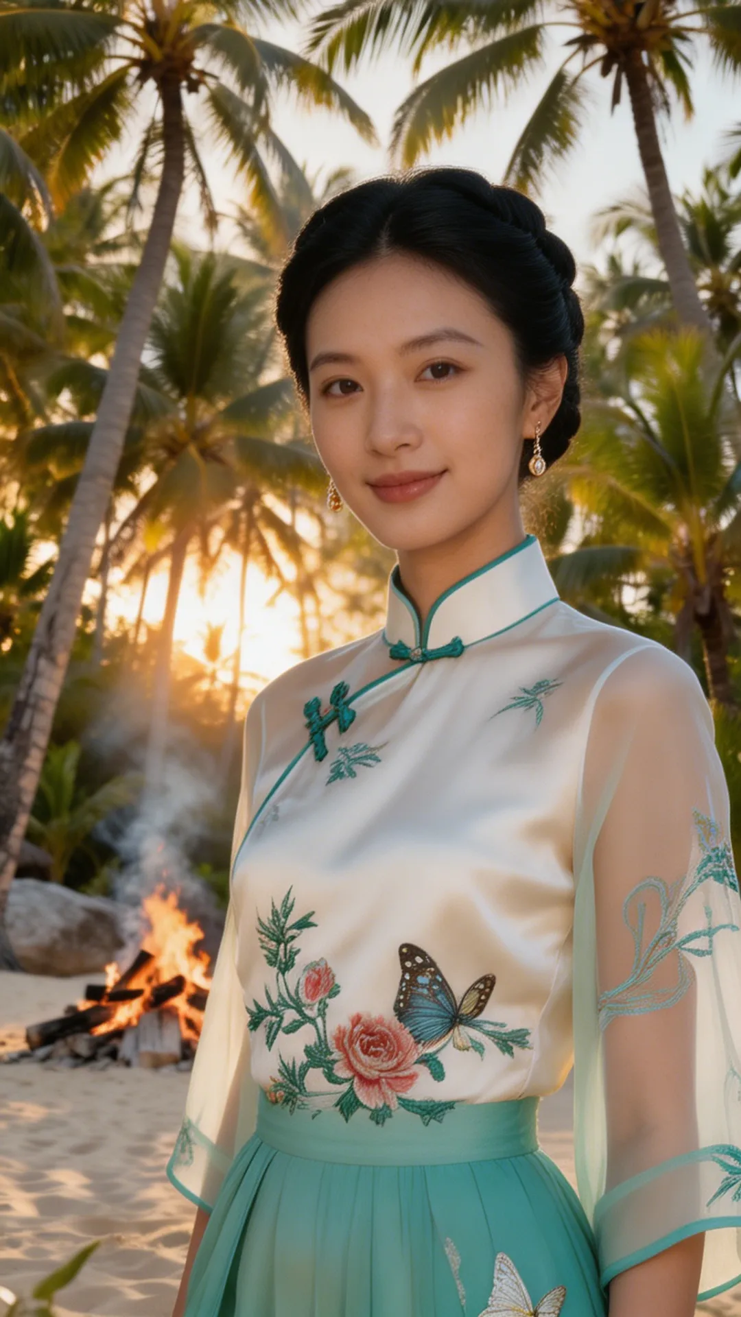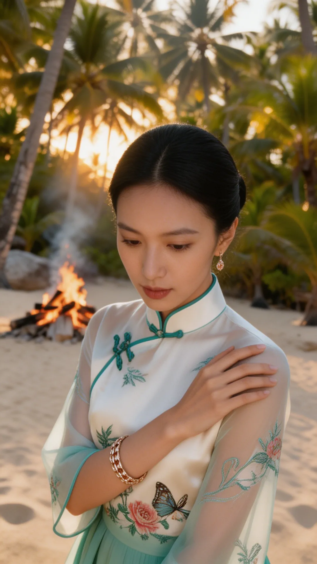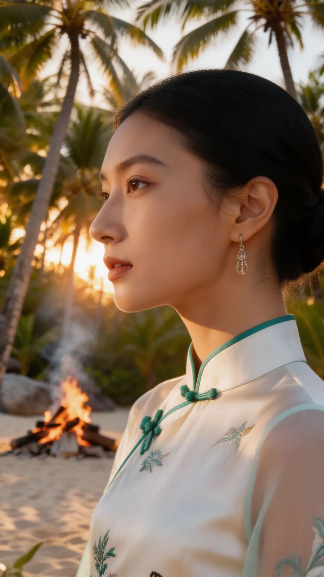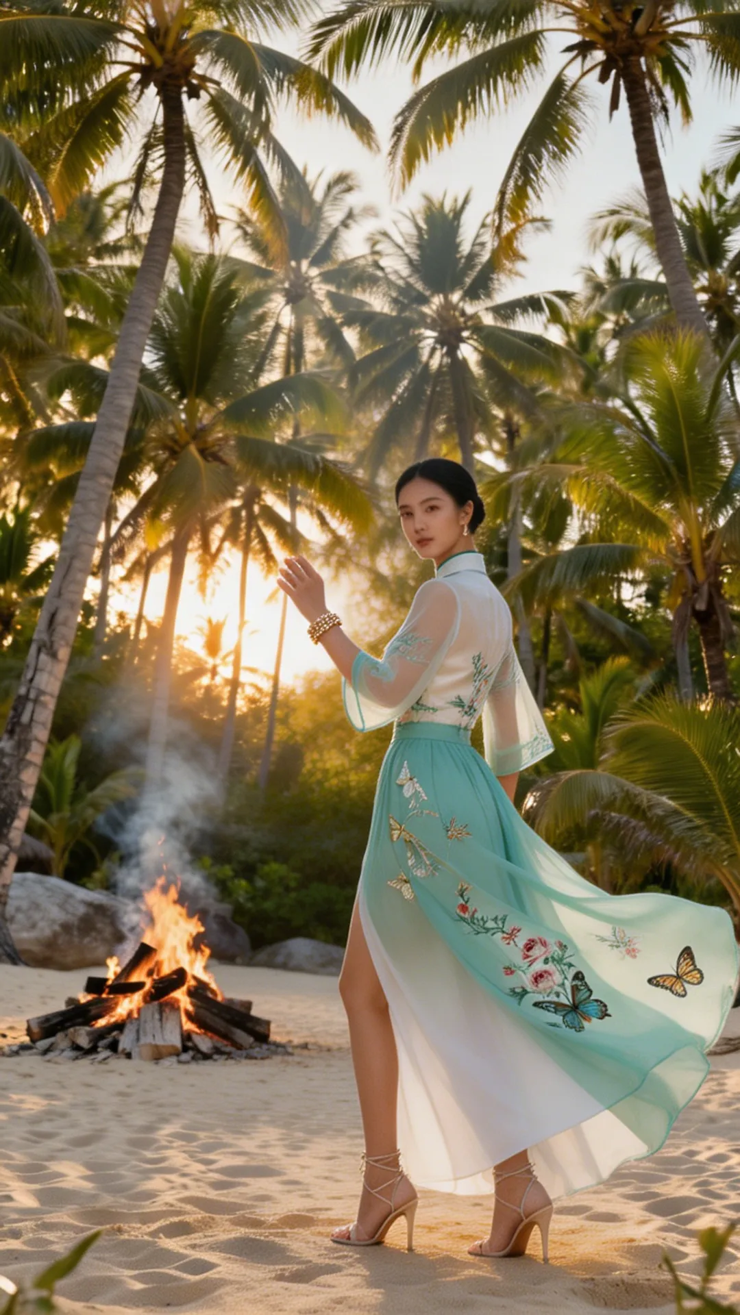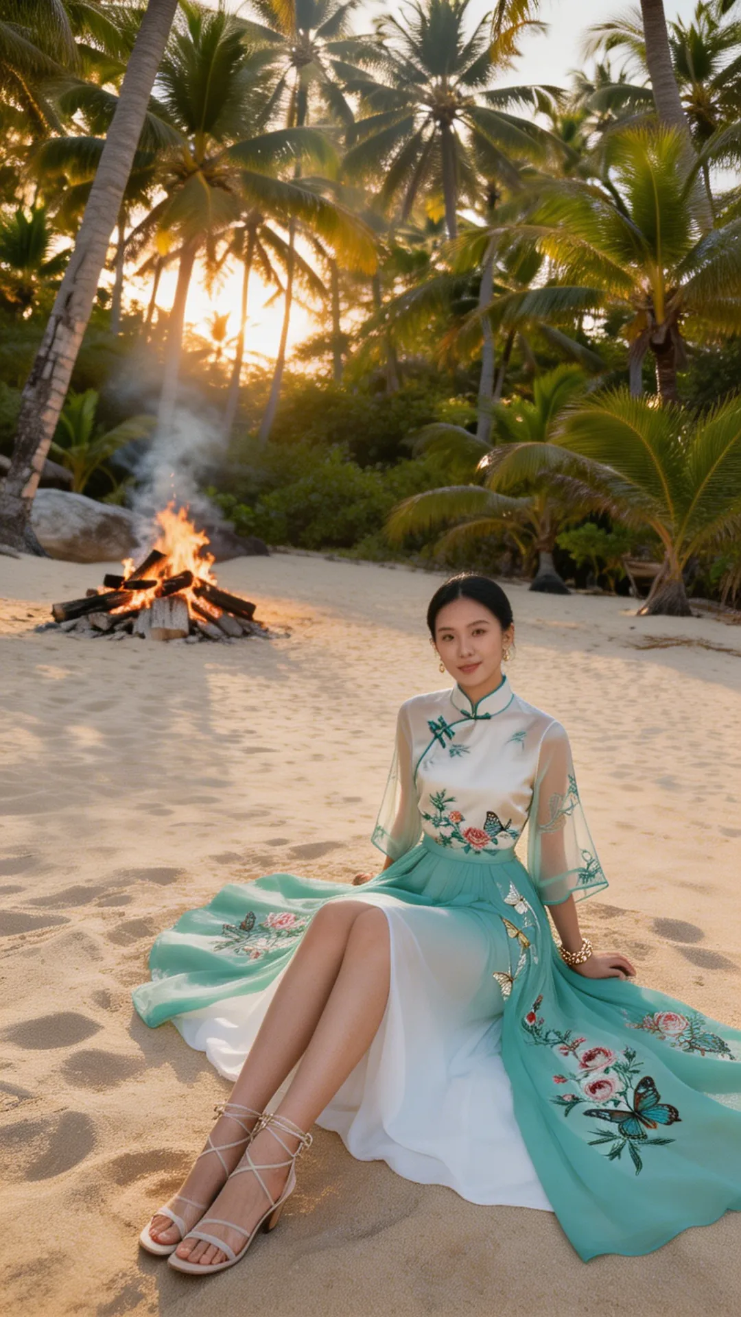 这套 look 的精髓,在于一个 “融” 字。 不是把中式的衣服硬穿去海边,也不是把热带的元素硬加在中式上,而是让它们在气质上相互成就: 热带的风,吹散了中式的厚重;东方的韵,中和了热带的随意。
