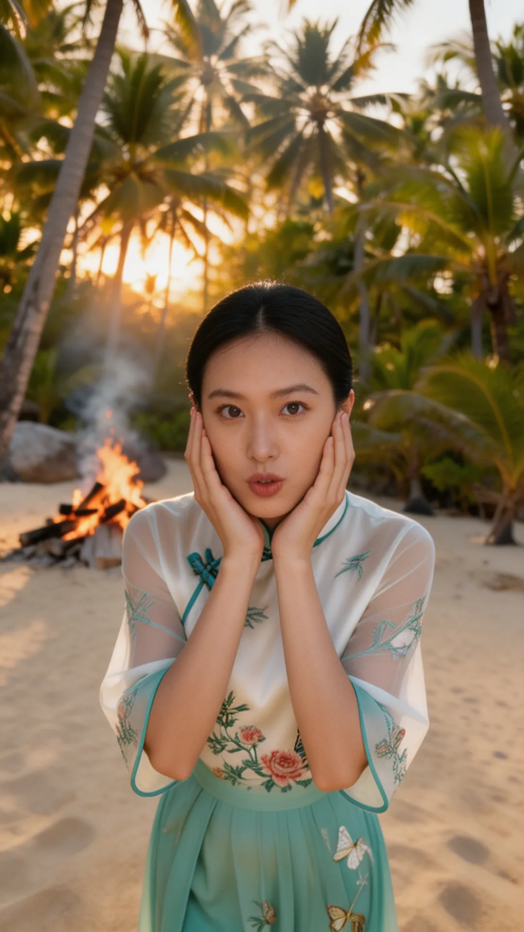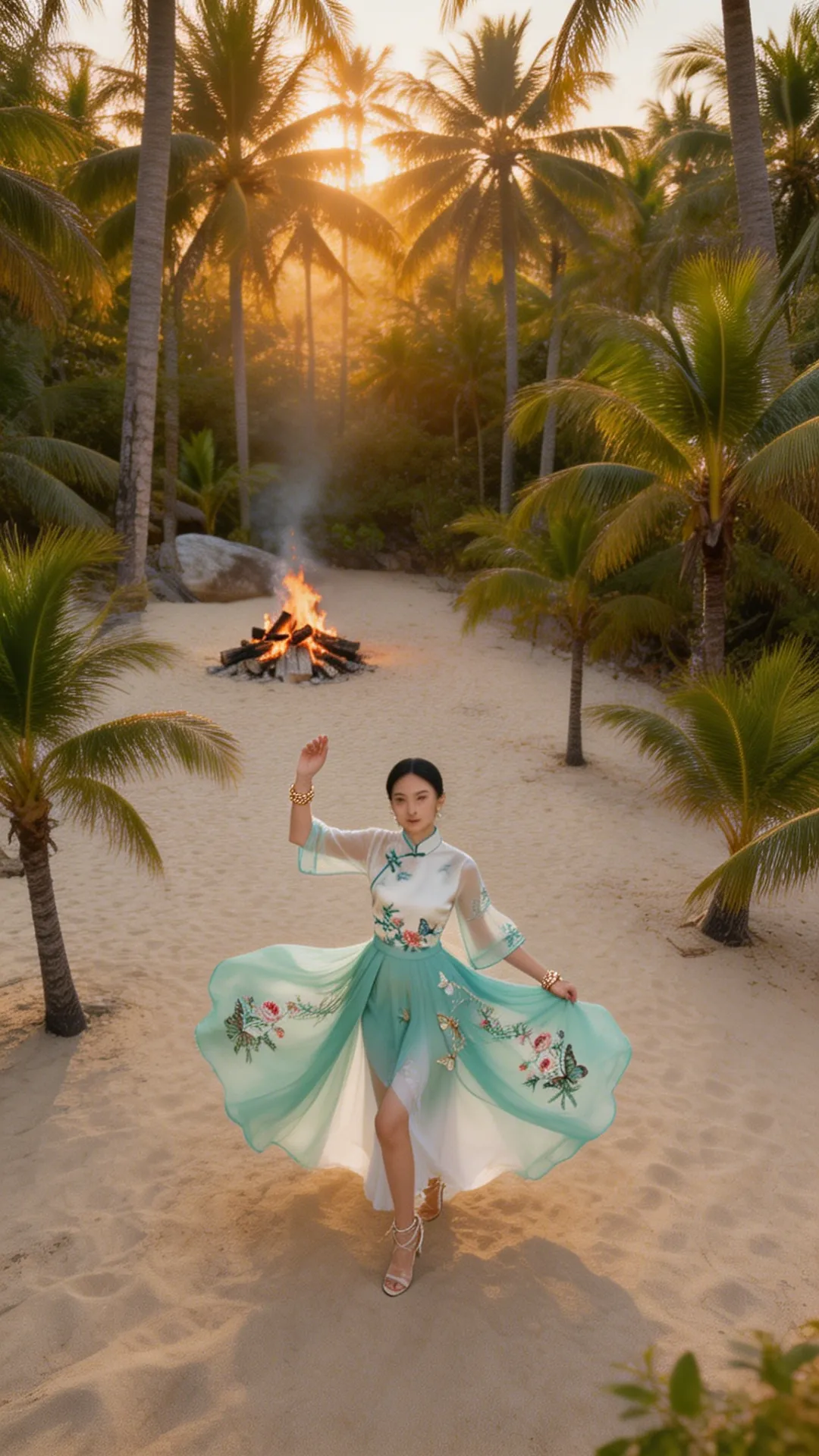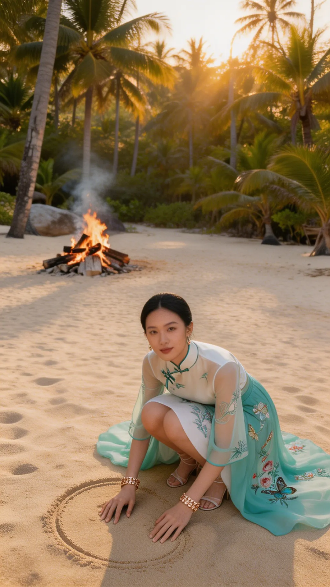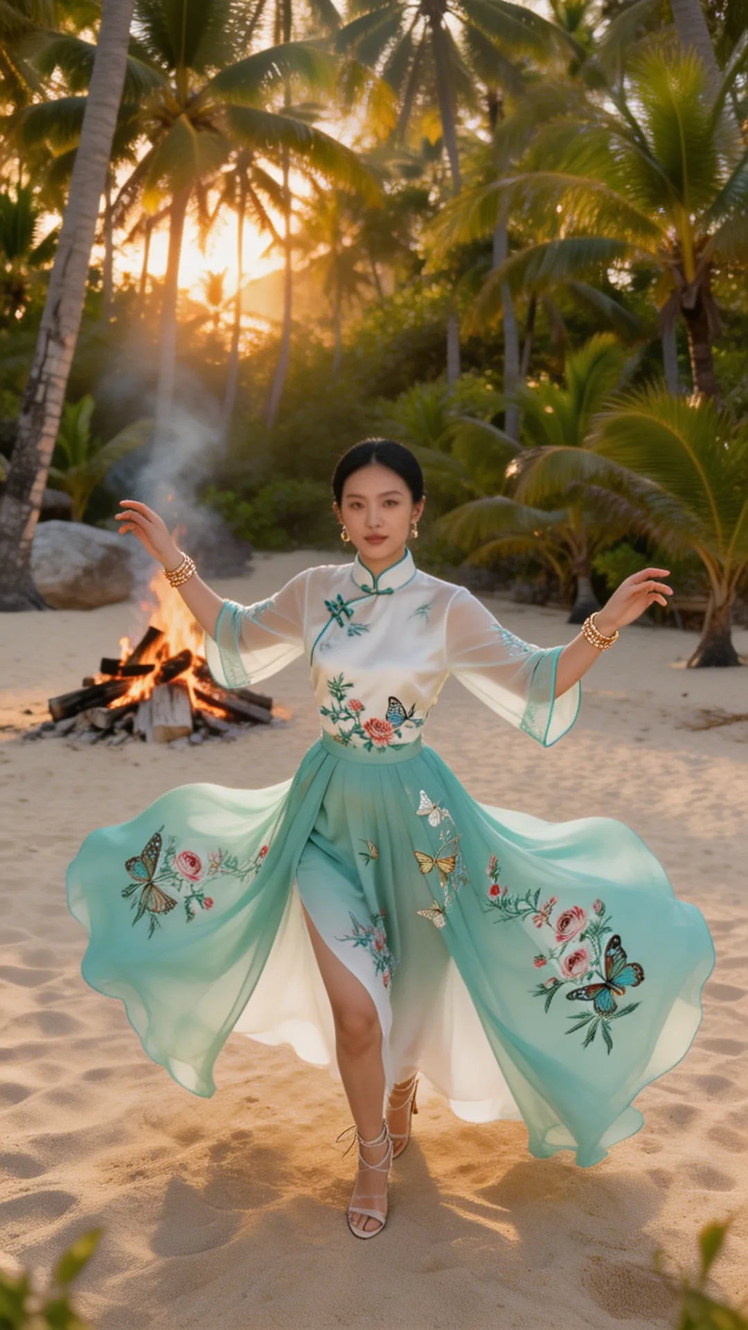 这套 look 的精髓,在于一个 “融” 字。 不是把中式的衣服硬穿去海边,也不是把热带的元素硬加在中式上,而是让它们在气质上相互成就: 热带的风,吹散了中式的厚重;东方的韵,中和了热带的随意。