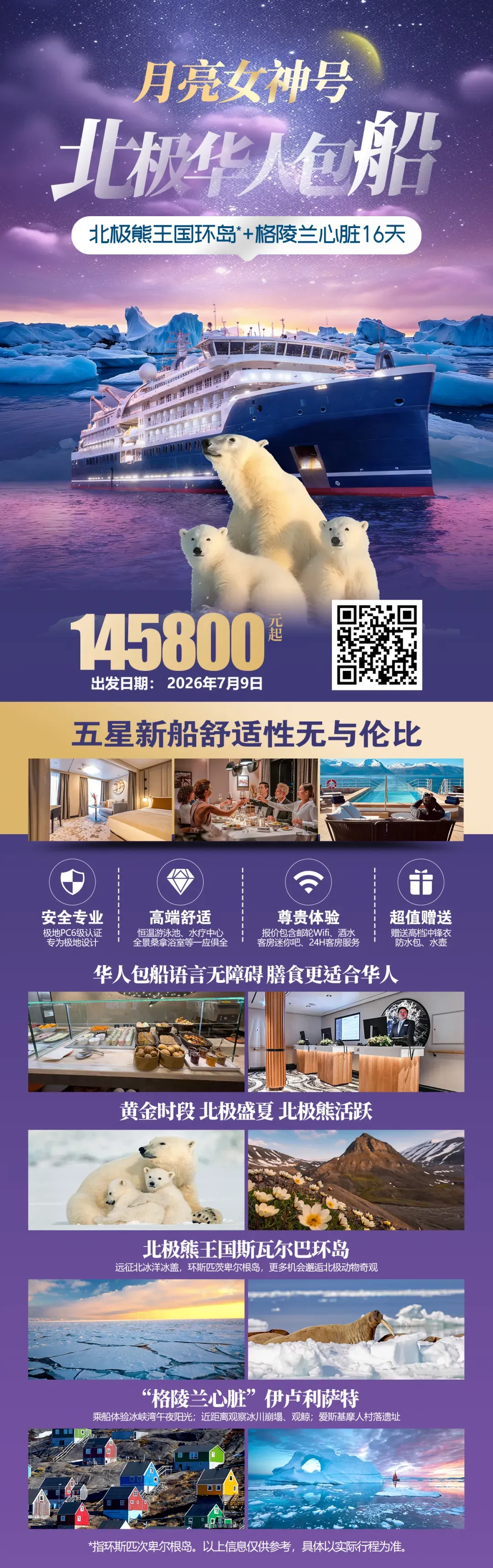 重要提醒:月亮女神号北极华人包船仅192席,2026年7月黄金航次火热预定中,席位稀缺,先订先得!