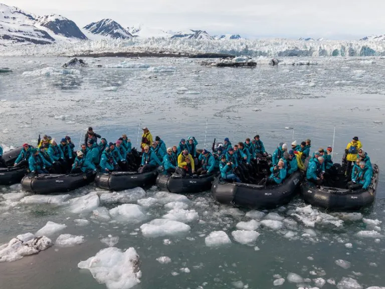 专属探险体验:专业探险队全程陪同,开展极地科普讲座,带你了解北极的生态与历史,解锁冲锋艇巡游、冰原徒步等特色活动。