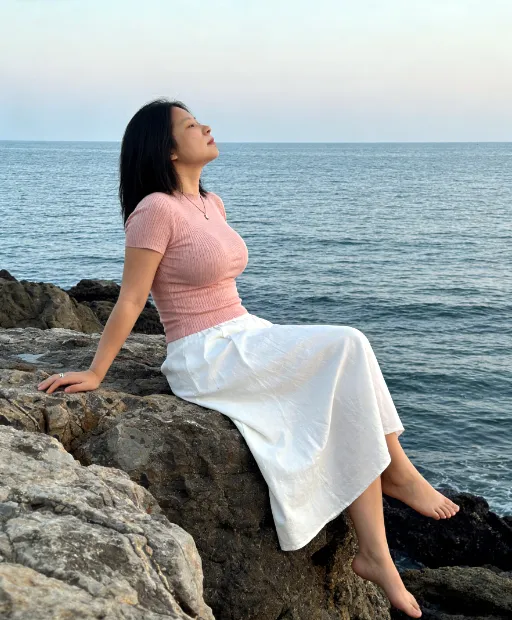 救命!就这么懒懒地靠在栏杆上,把整个人完完全全交给海风也太爽了吧🥹!眼睛一闭,啥都不用想,就听着海浪一遍一遍拍过来,咸咸的风扑在脸上,头发被吹得乱乱的也完全没关系!就这么放空着,感觉所有压力、焦虑都被风吹得一干二净,只剩下满心里的平和!粉上衣贴出舒服的曲线,白裙子被风掀起来一点点,整个人都软乎乎的!原来最舒服的拍照状态,就是不用演、不用装,就做自己,和这片海好好待一会儿,这种松弛感真的太绝了啊!