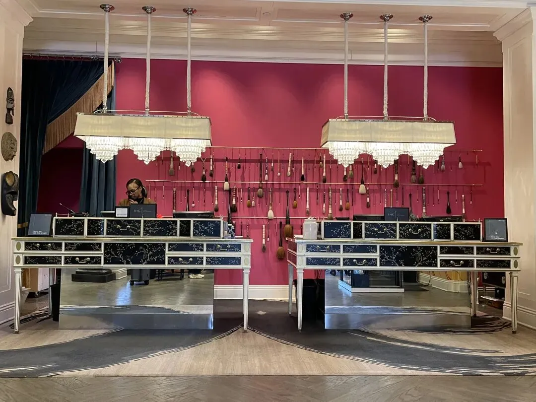 吃饱喝足回酒店休息,这家酒店大堂很有特色,那满墙的毛笔,艺术感十足。