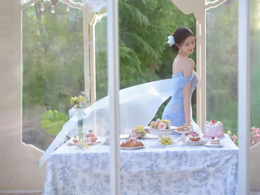 王楚然 | 浅蓝纱裙花园写真,温柔贵气,宛如从童话里出来的公主!