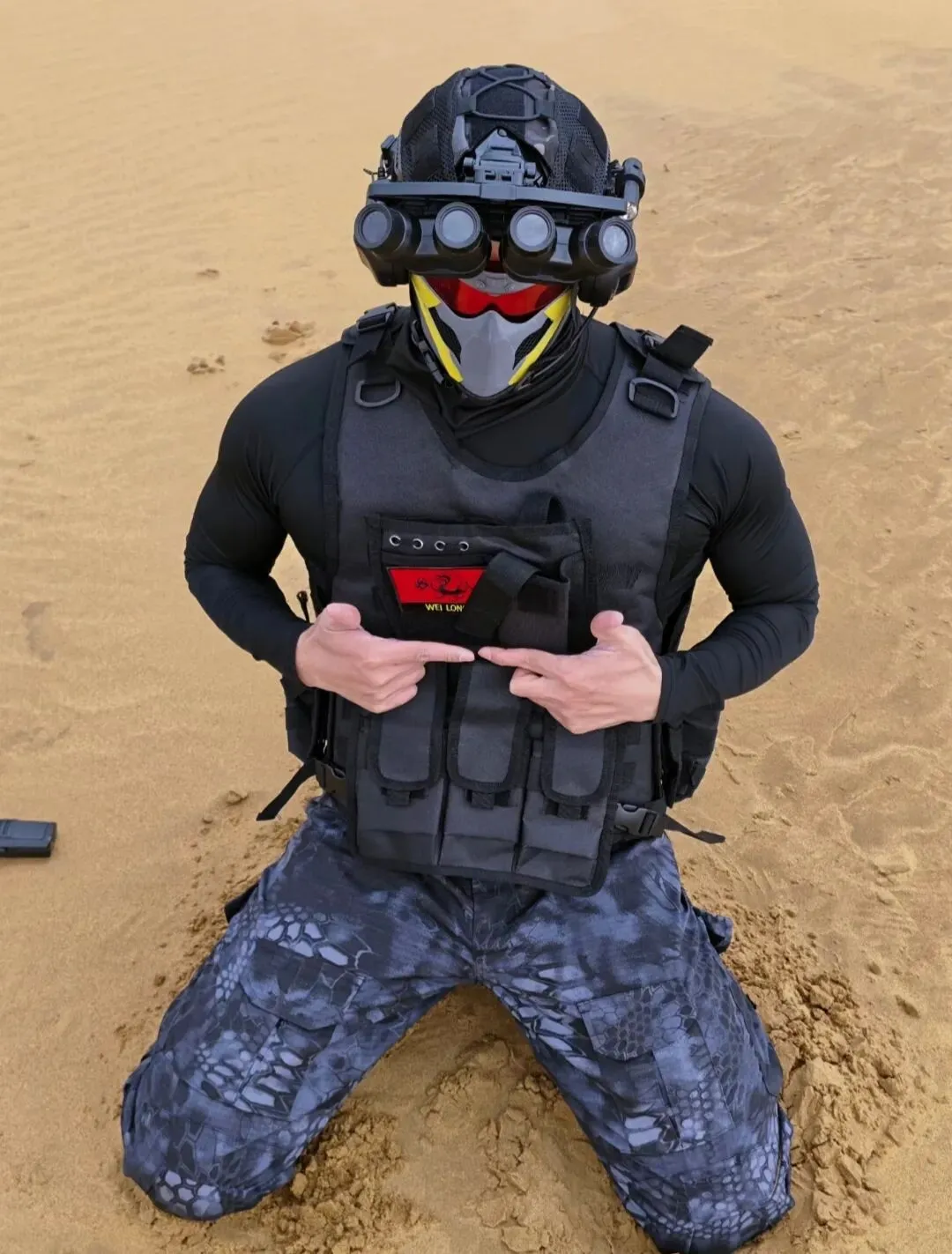 想象一下,他站在沙漠的落日里,古铜色的肌肉被夕阳镀上一层金边,迷彩服被风吹得猎猎作响,白色背心贴在身上,勾勒出每一块肌肉的轮廓。他抬手擦去额头的汗水,喉结上下滚动,古铜色的脖颈线条利落,那画面简直就是“性感”的代名词。