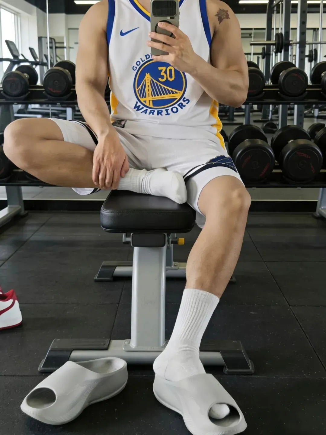 那种最普通的棉质背心,穿在他身上却格外有性张力。因为出汗,背心会贴在身上,勾勒出胸肌的饱满轮廓,腋下的肌肉线条若隐若现,肩膀的宽度被背心衬得更加宽阔。他抬手整理迷彩外套的时候,背心会往上缩一点,露出腰腹的腹肌,古铜色的皮肤和白色背心形成鲜明对比,这种“硬汉+性感”的反差,直接戳中了我的审美死穴。
