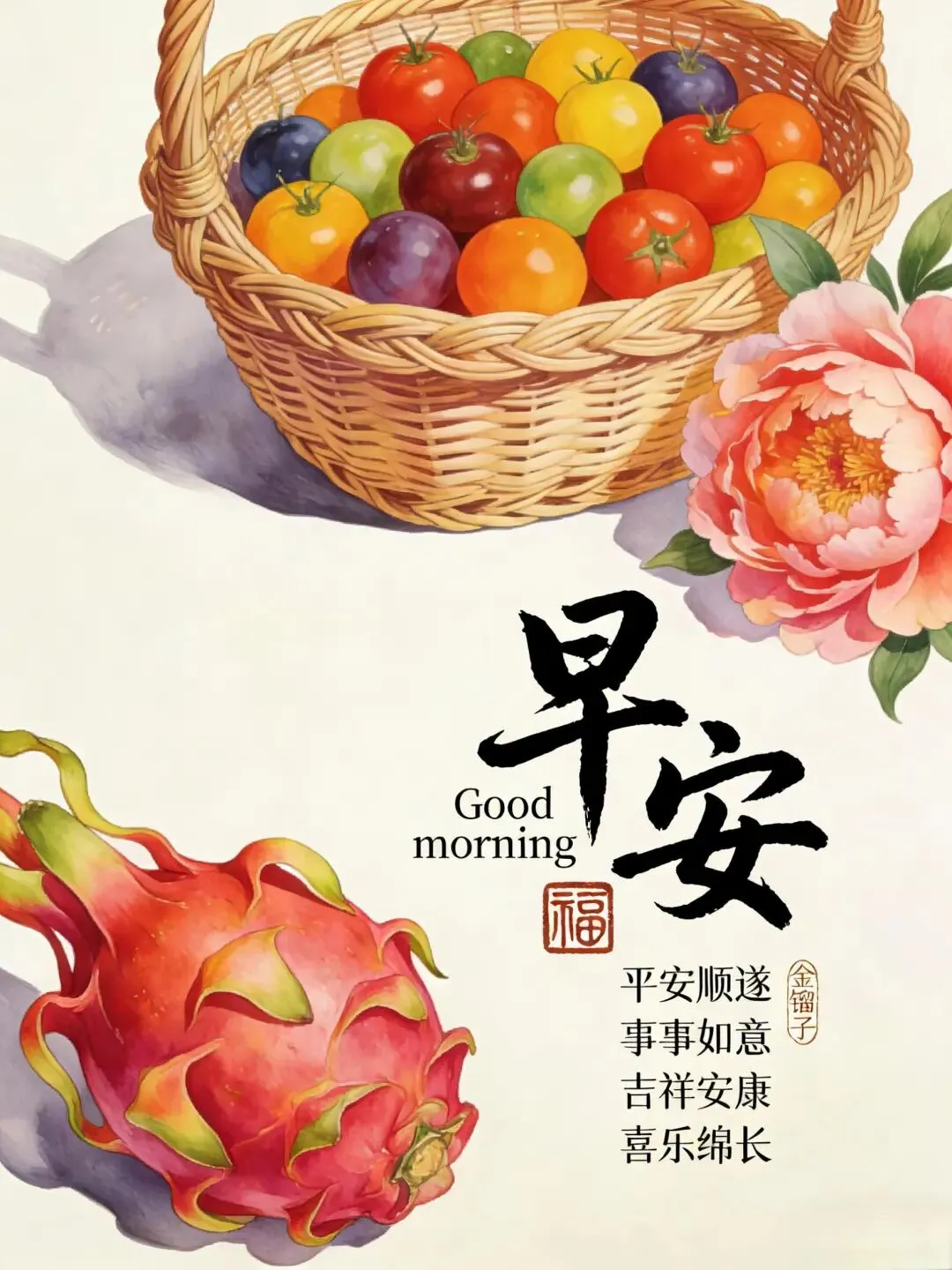 时光,让人读懂了珍惜;生活,让人明白了不易;真诚,让人缩短了距离;缘分,让人感恩相遇;又是美好的一天,愿你万事如意。早上好!🌹💯🍎🏝️🍅🎉