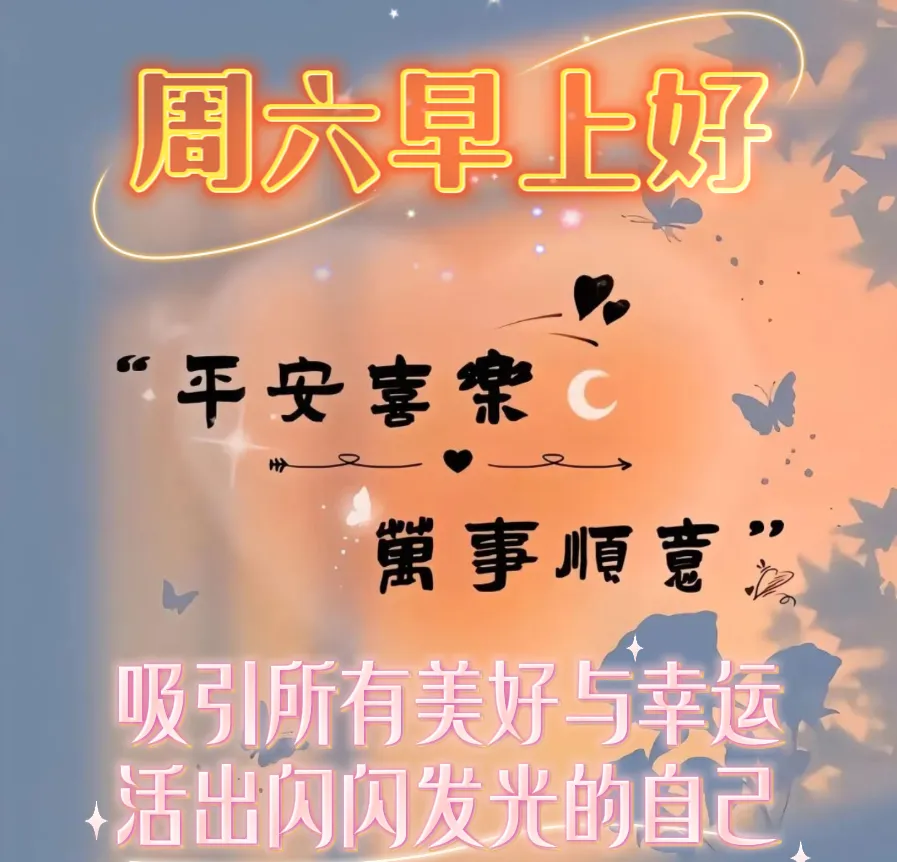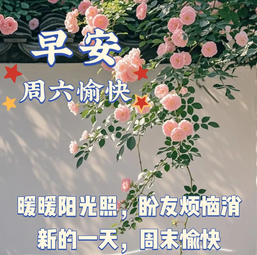 祝福有爱,问候有心;笑迎今天,期待明天;让健康相随,让快乐相伴!心态好,样样好,心地宽,事事安,不知不觉又一天,祝福再次送身边,千言万语一句话,幸福快乐每一天,周六早上好!