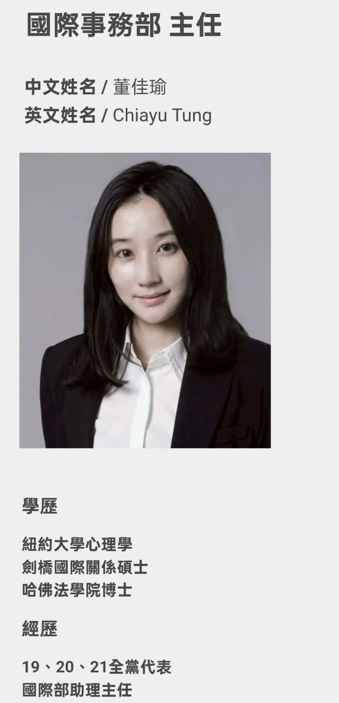 郑丽文率14人访问团赴大陆的消息公布后,全网目光一度聚焦在几位副主席身上,很少有人想到,此行最亮眼的关键人物,竟是30岁的董佳瑜。这位国民党国际事务部主任,从上海的校园一路走到哈佛的殿堂,凭着横跨两岸的成长经历与顶尖的专业素养,在岛内“去中国化”的政治迷雾中,划出了一道清亮的光,也成为两岸交流舞台上,青春与实力兼具的鲜活身影。