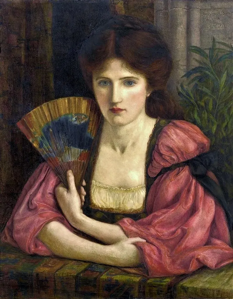 玛丽亚·斯帕尔塔利-斯蒂尔曼的画作《持扇自画像》,1874年。私人收藏