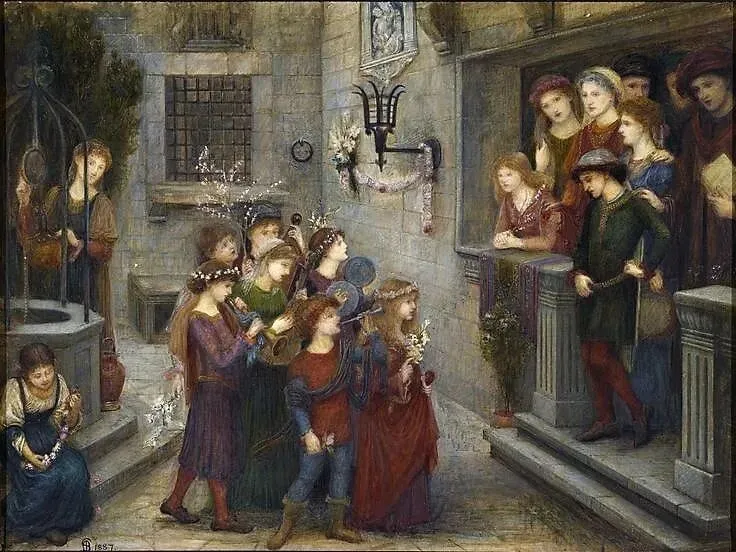 玛丽·斯帕塔利-斯蒂尔曼:《1274年福尔科·波尔蒂纳里的五月宴》,1887年