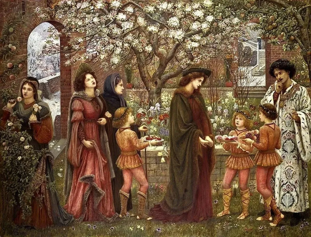 玛丽·斯帕塔利-斯蒂尔曼:《安萨尔多先生的花园》,取材于乔瓦尼·薄伽丘《十日谈》中的故事,1889年。私人收藏