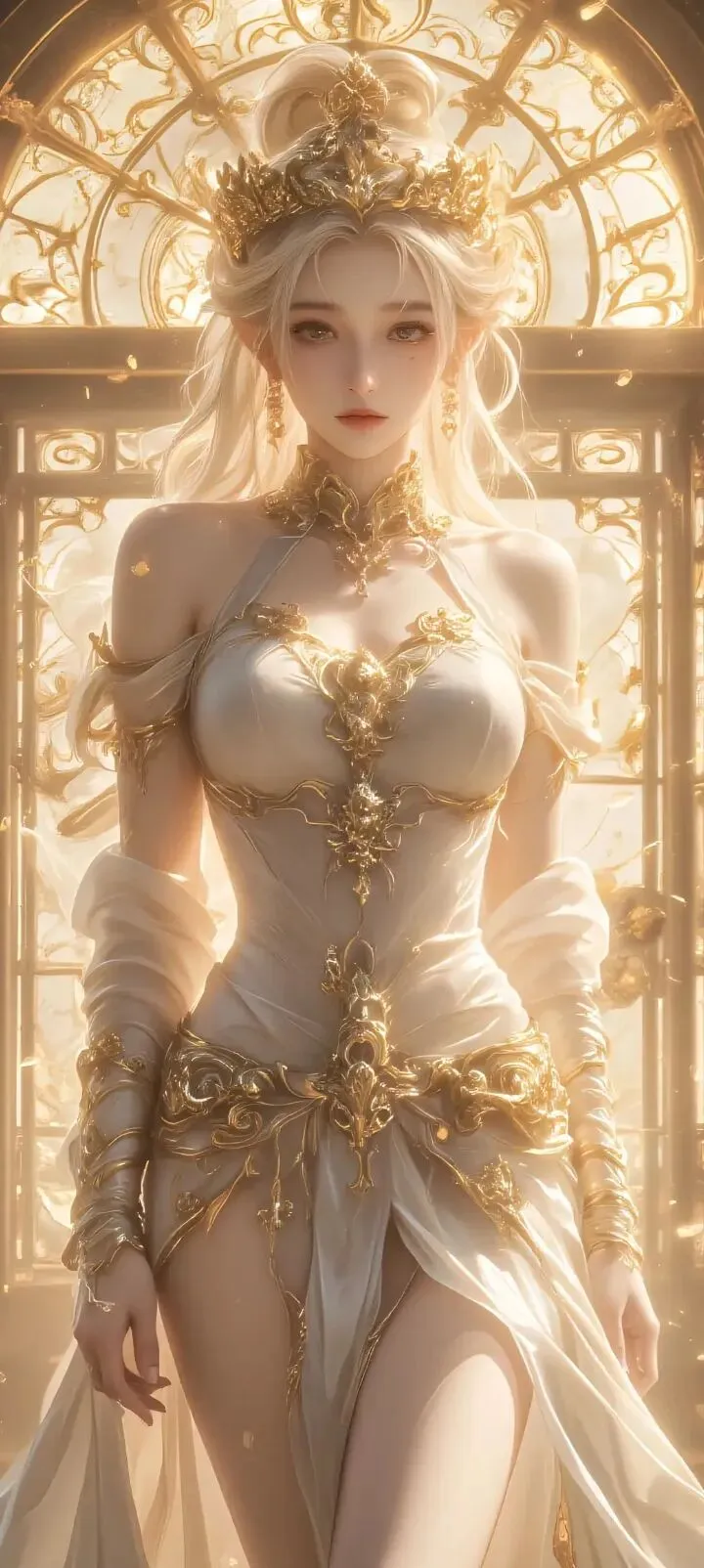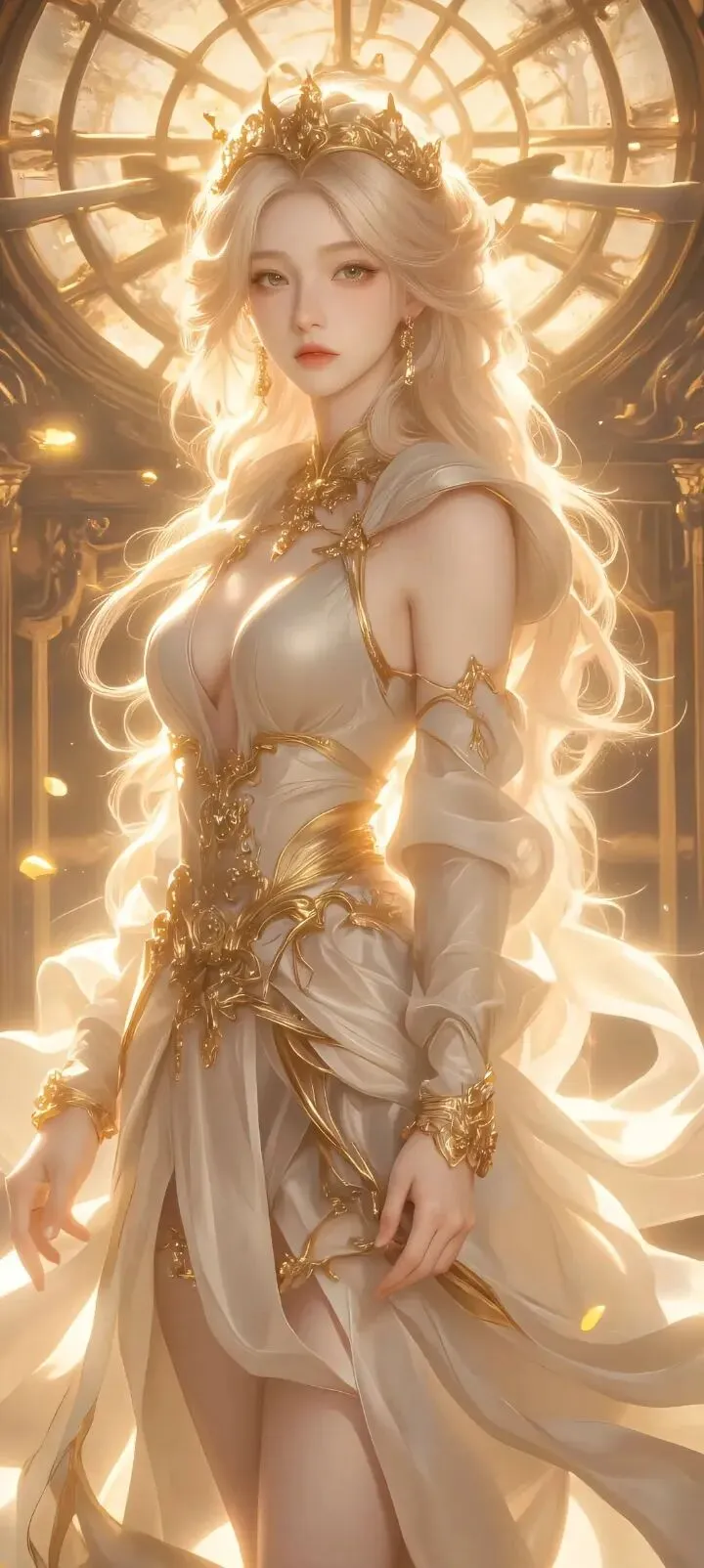 她是司掌命运轮回的星瞳女神,眉眼间镌刻着星河与宿命,没有浓妆艳抹的惊艳,却有着不染凡尘的清冷与庄重。一袭素净又暗含星纹的长袍,衬得她身姿挺拔,长发轻垂,每一个眼神、每一次抬手,都带着神明独有的威严,却又藏着挥之不去的孤寂。