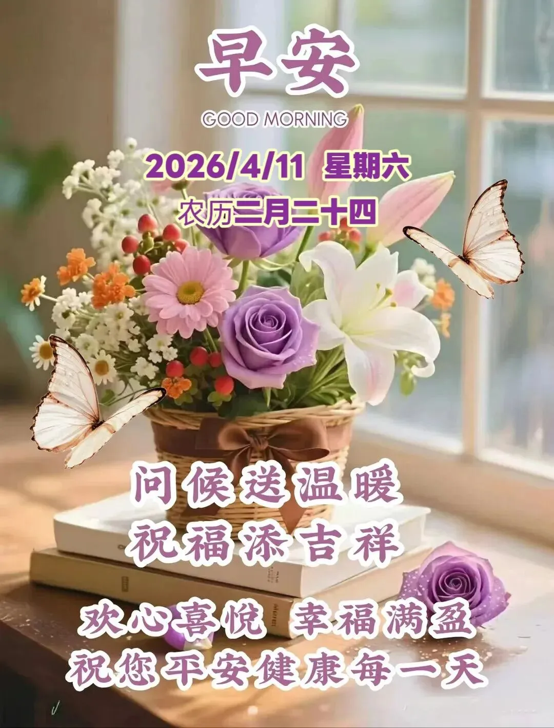 当前位置:首页>美女资讯>140张2026年4月11日早上好唯美壁纸,温柔暖心早安吉祥文案,早安安康,岁岁平安!