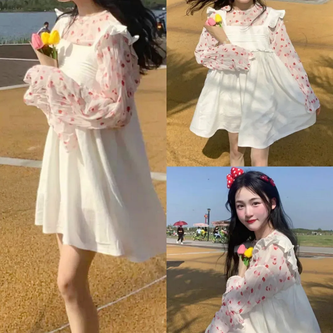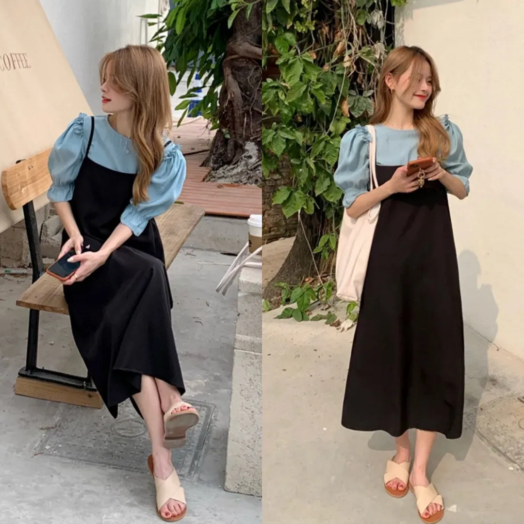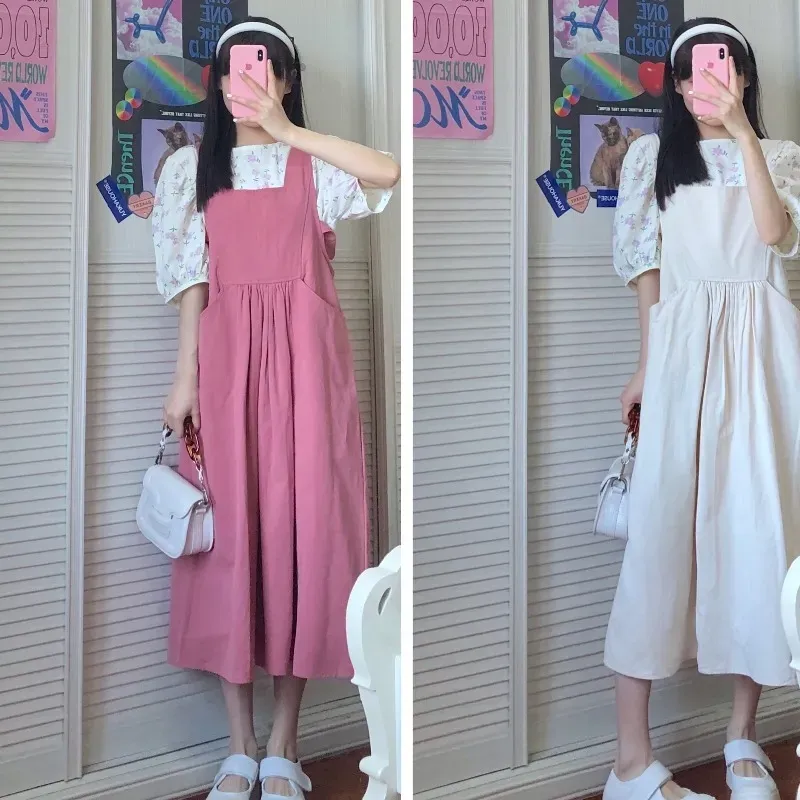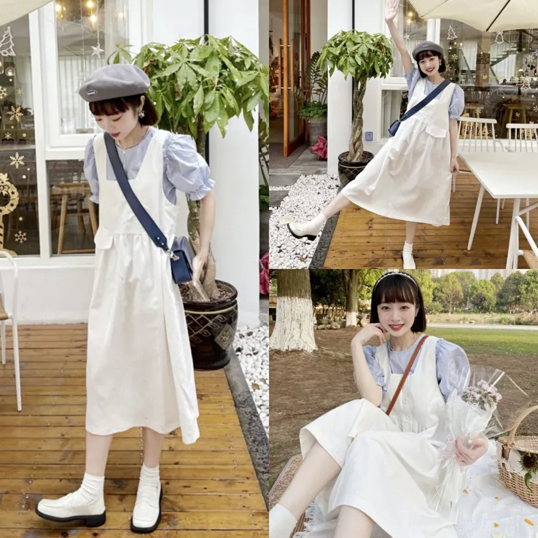 偏向比较可爱甜美风格的女生来说,可以内搭带有娃娃领这种款式的衬衫来凹造型,然后外搭蓬蓬裙摆的吊带裙,看着就很甜美feel,而且还带有青春感,好减龄哦!