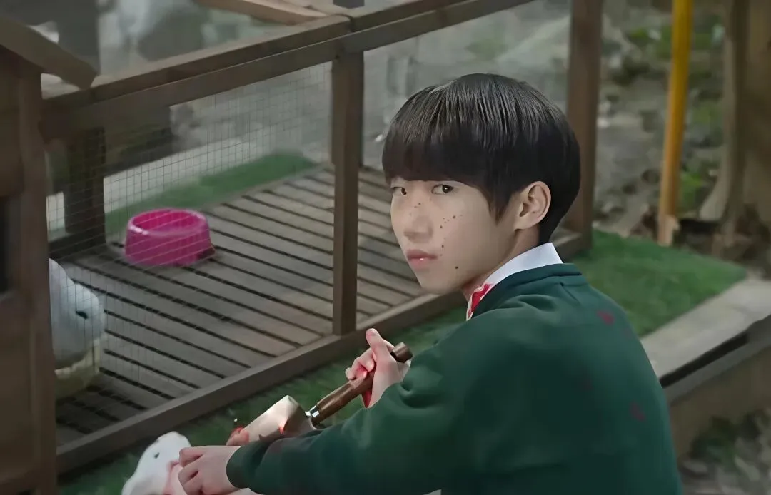 不久后,他在学校用刀捅死了一只可爱的兔子,吓坏了老师和同学。